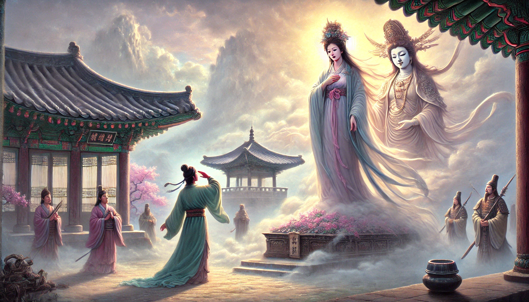 "걱정 마십시오." 관음보살이 따뜻하게 말했습니다. "당신의 아이들은 훌륭하게 자랄 것이고, 당신의 사랑은 대대손손 이어질 것입니다."