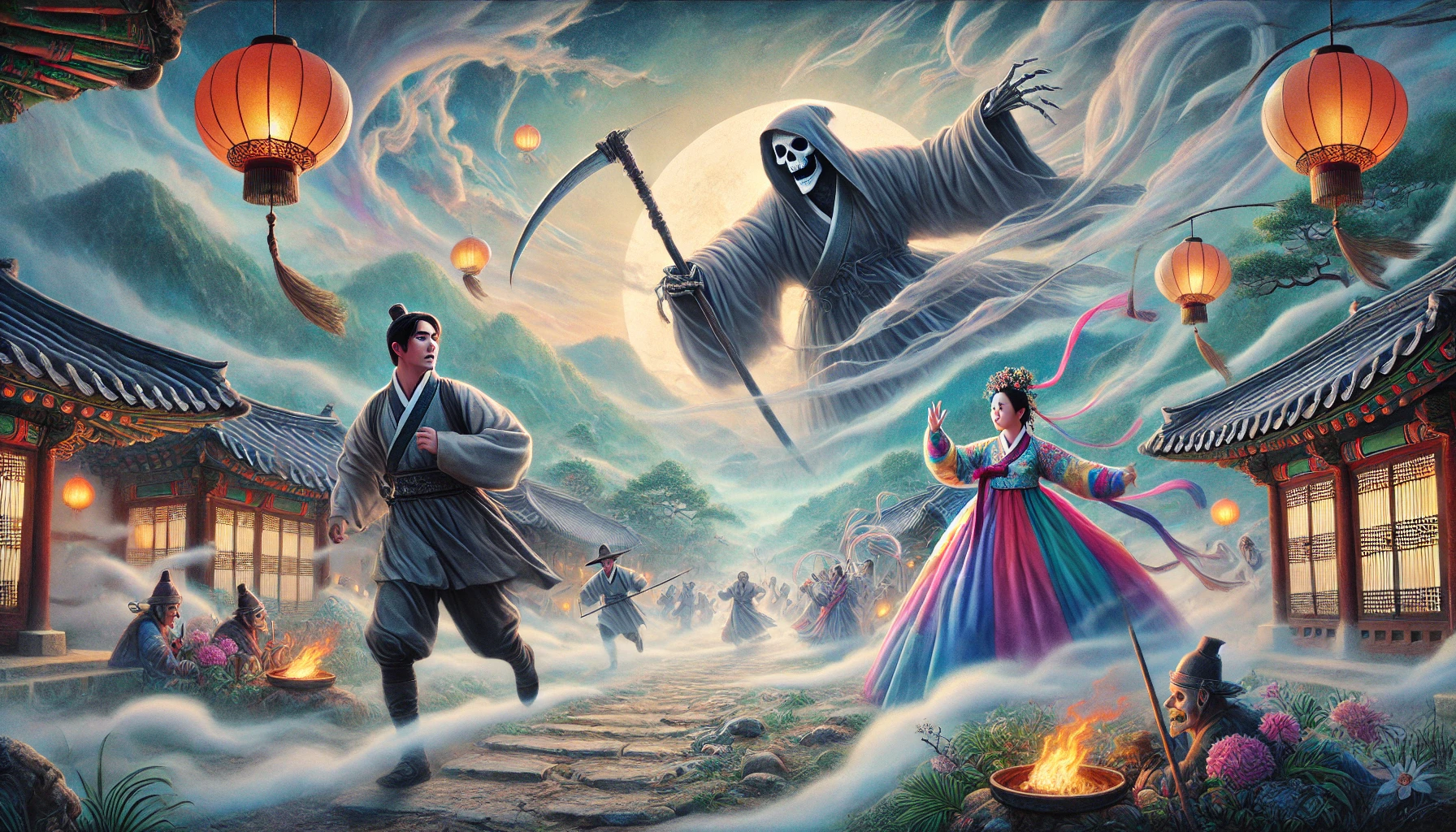 무당의 굿판에서 드러난 운명, 저승사자를 피해 도망친 인간 (출처-어우야담)