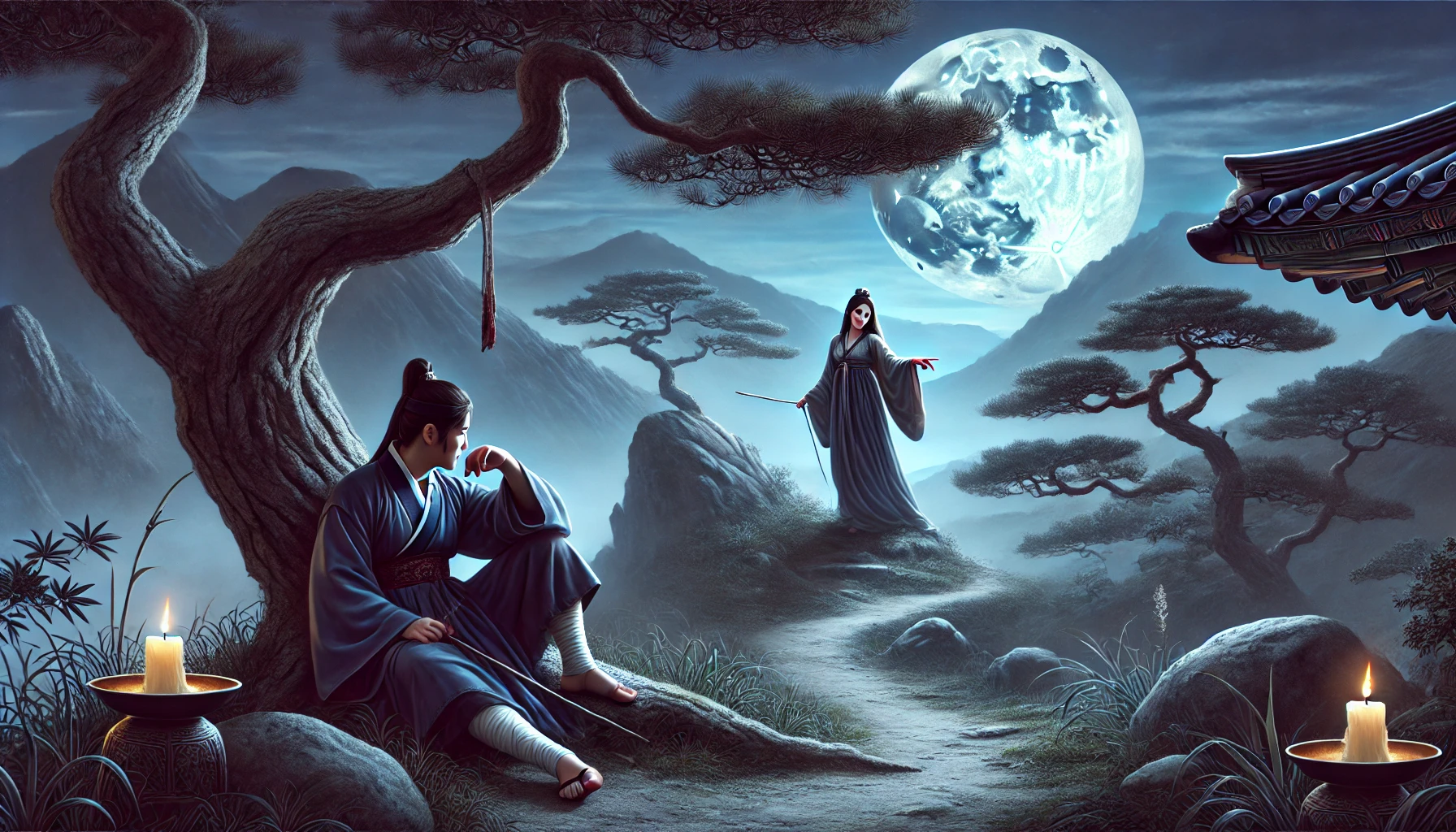 옛날 옛적, 과거 시험을 보러 가던 한 선비가 있었다. 장엄한 산길을 홀로 걸으며 피곤을 느낀 그는 잠시 나무 아래에 앉아 쉬고 있었다. 그때, 저 멀리 달빛 아래서 희미하게 보이는 여인의 손짓이 그의 시선을 끌었다. 마치 자신을 향해 이끄는 신비한 유혹처럼 보이는 그 손짓에 선비는 이끌리듯 발걸음을 옮겼다. 산길을 가득 채운 정적 속에서 그녀의 미소와 따뜻한 눈빛이 그의 마음을 한순간에 붙잡았다. 미묘한 긴장감 속에서 마주한 두 사람은 금기된 사랑의 초입에서 각자의 마음을 온전히 내어주었다.