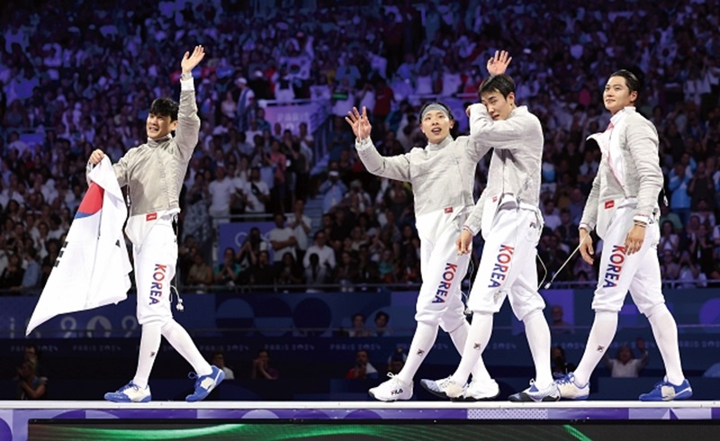 기분 좋게 출발한 한국 펜싱은 나흘 뒤 열린 단체전에서도 새 역사를 썼다. ‘어펜저스(펜싱+어벤저스)’로 불리는 오상욱, 구본길, 박상원, 도경동으로 구성된 남자 사브르 대표팀이 헝가리를 45대 41로 제압하고 우승을 차지했다. 이로써 2012 런던올림픽, 2020 도쿄올림픽에서 2연패(2016 리우올림픽은 종목 로테이션으로 제외)에 이어 올림픽 남자 사브르 단체전에서 3연패를 달성했다. 오상욱은 한국 펜싱 사상 첫 올림픽 2관왕에 등극하는 쾌거를 이뤘다.