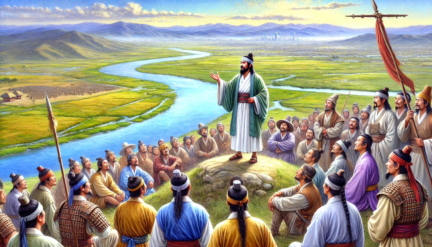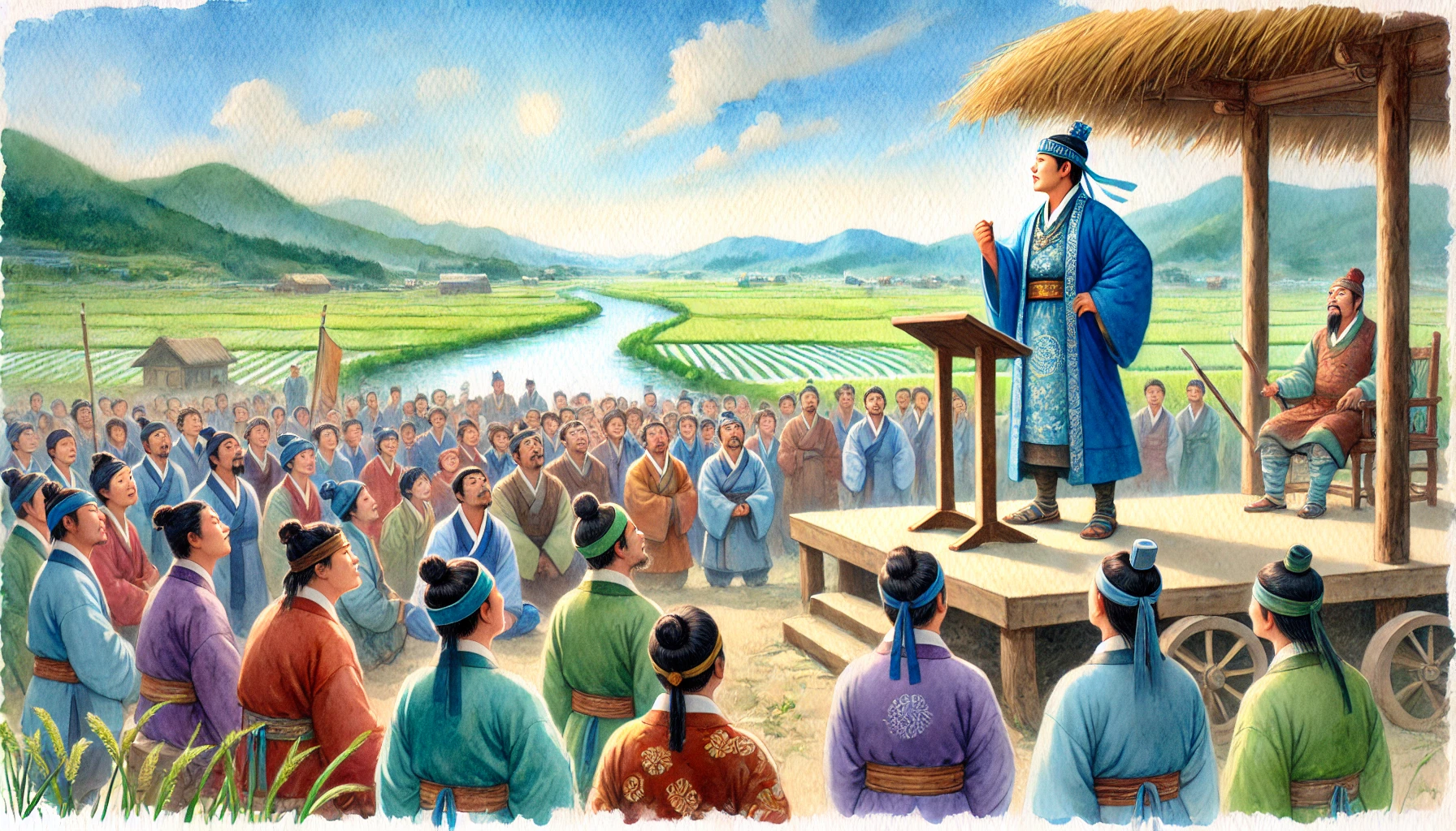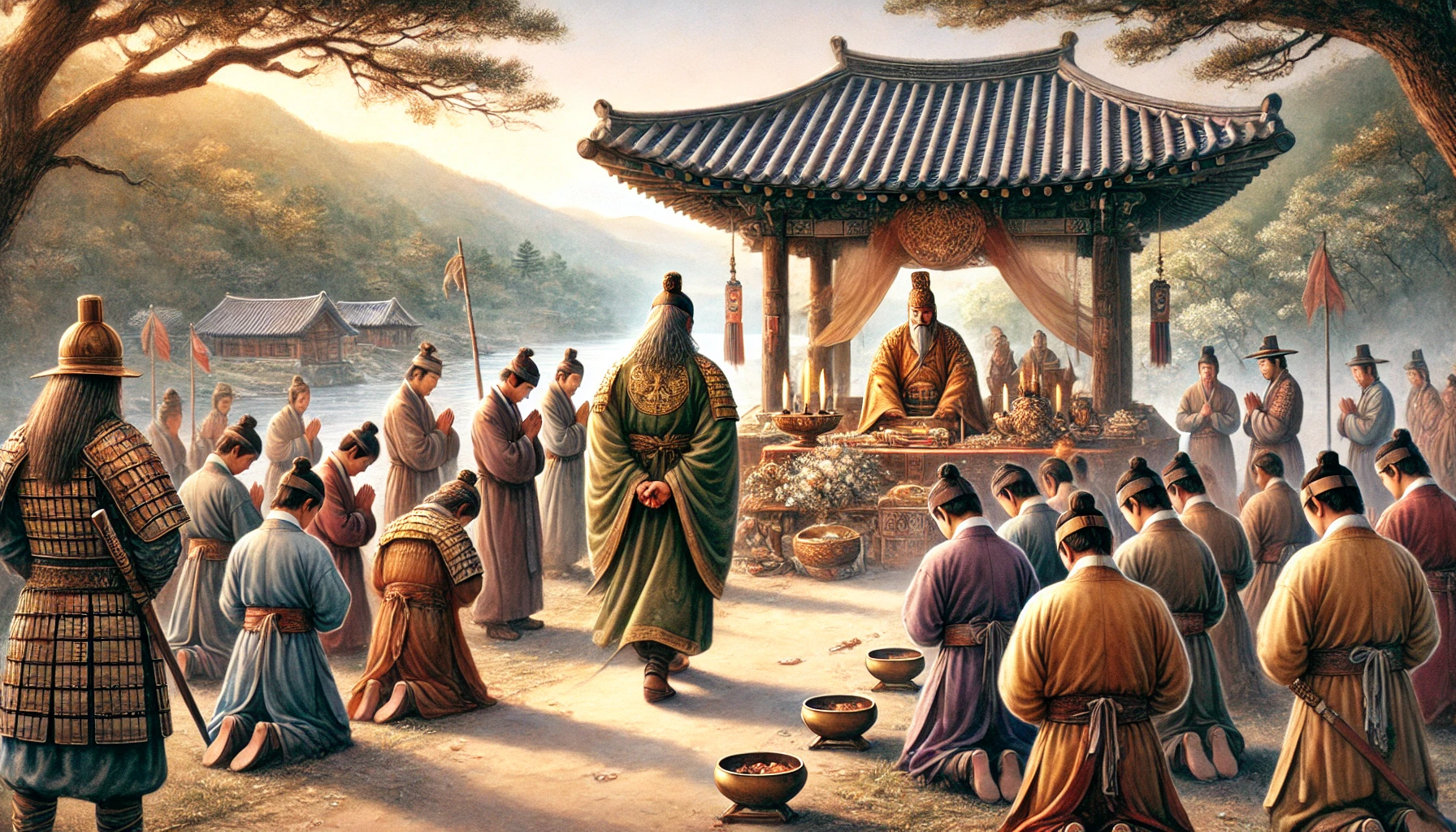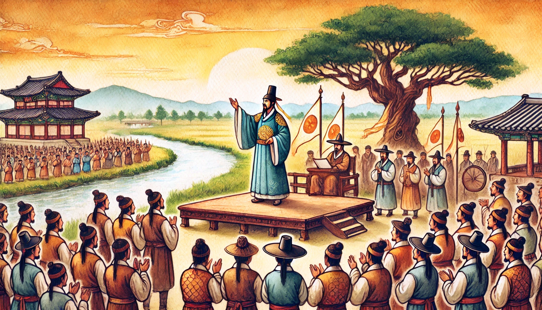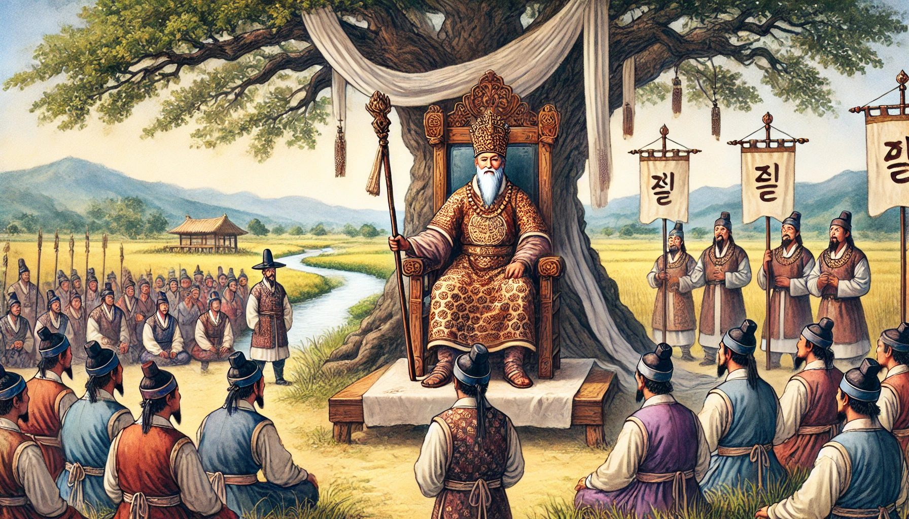 “우리를 이끄는 온조님은 이제 우리의 진정한 왕이십니다. 백성들을 위해 이 땅의 이름을 정하고 나라를 선포해주십시오.”