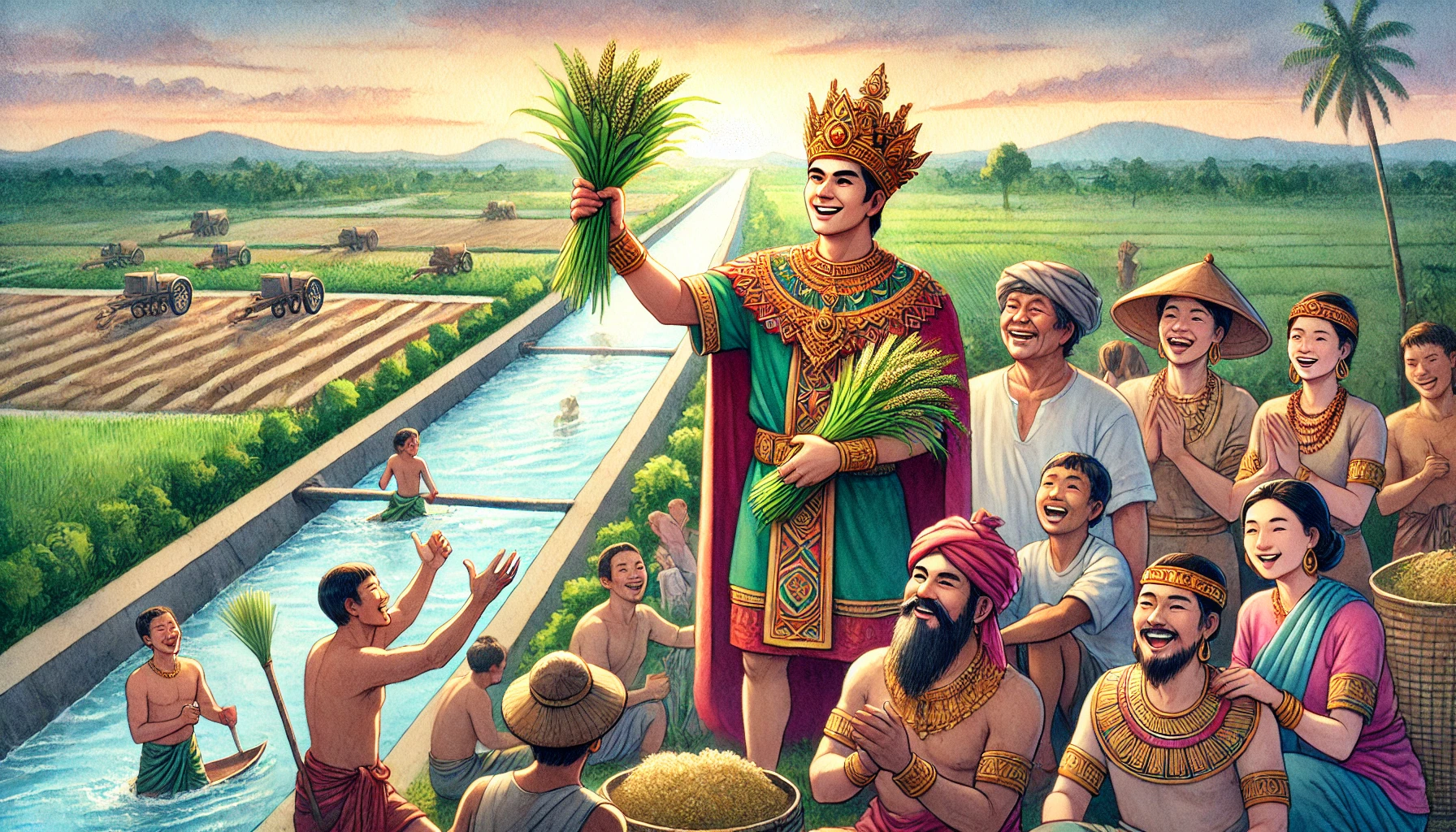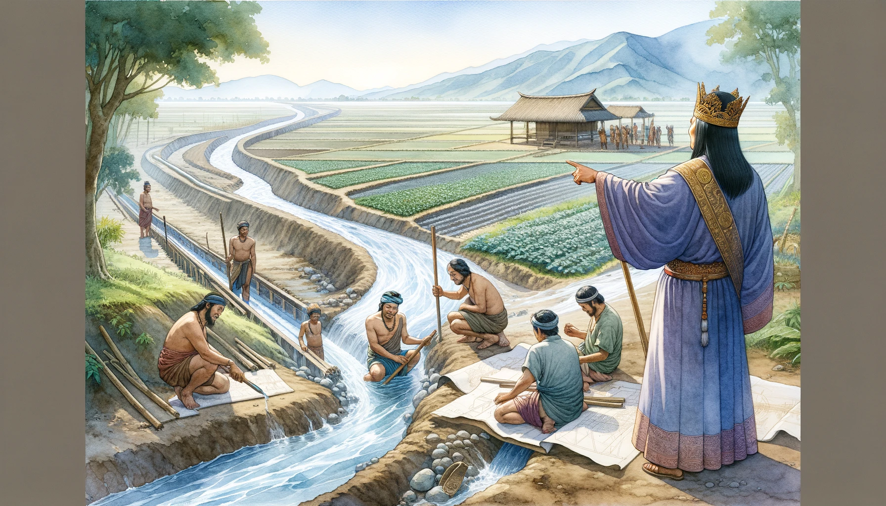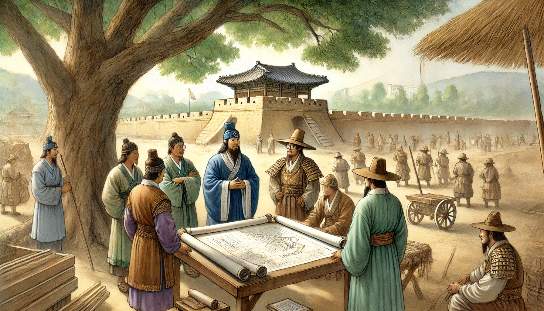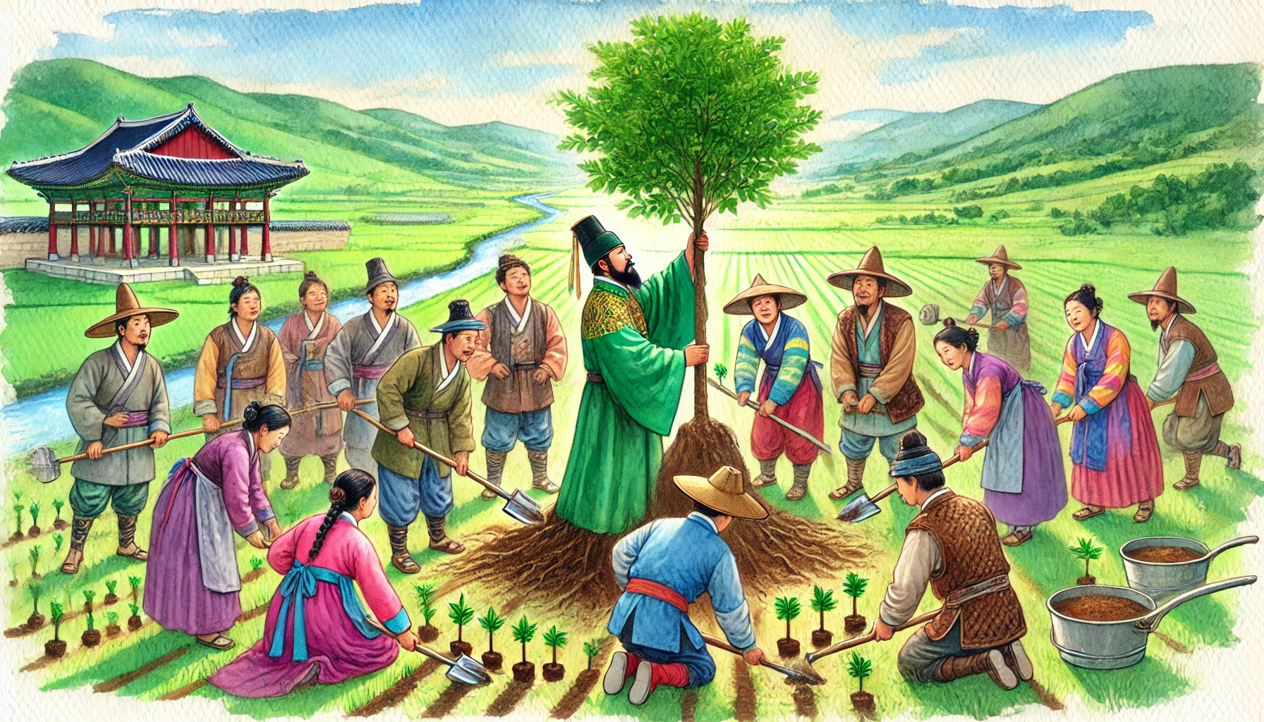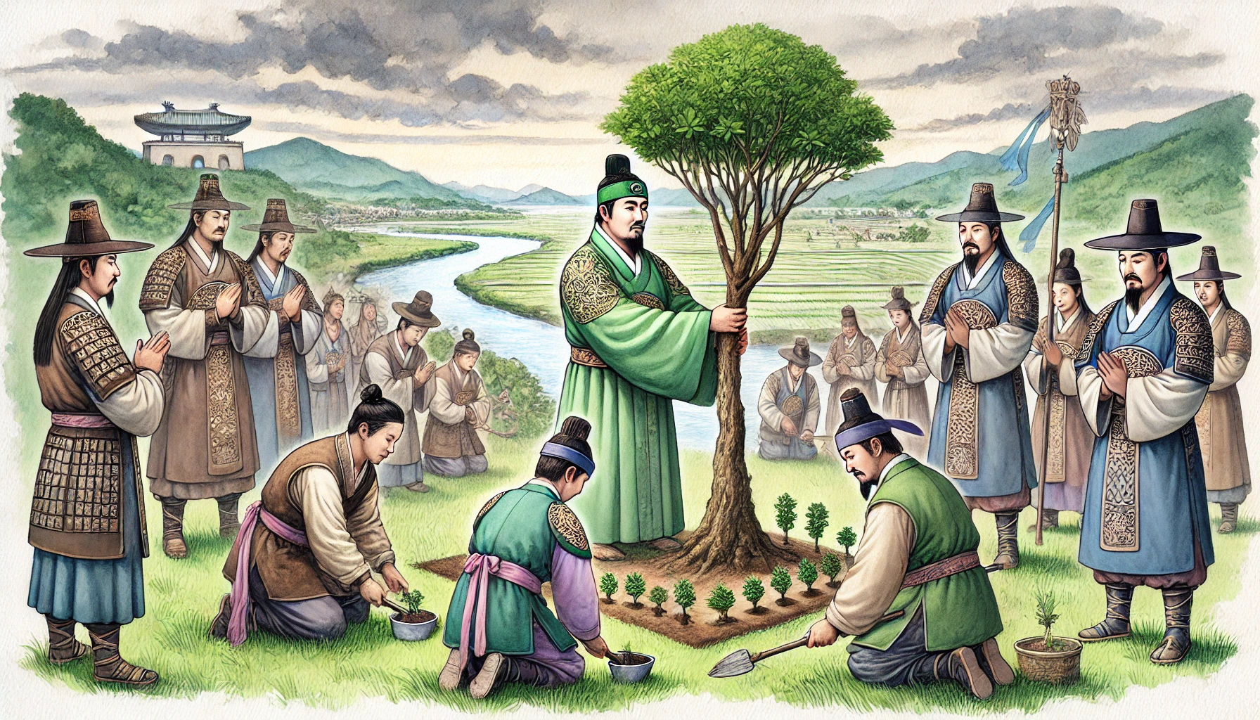 어느 날, 온조는 강가를 걸으며 마을의 남자들과 함께 물길을 살폈다. 그들은 강물을 농경지로 끌어오기 위해 물길을 새로 내야 했다. 하지만 물길을 돌리는 것은 쉽지 않은 작업이었다. 며칠 밤낮을 고심하던 온조는 드디어 적절한 물길을 찾아냈고, 그것을 따라 수로를 만드는 작업을 시작했다. 백성들은 그의 지시 아래 힘을 합쳐 새로운 농경지를 완성해갔다. 그리고 얼마 지나지 않아, 그들의 땅은 강물이 흐르고 곡식이 자라는 비옥한 들판으로 변하기 시작했다.