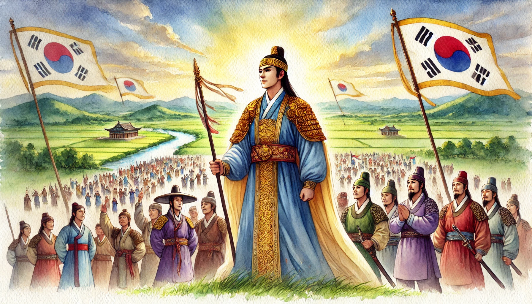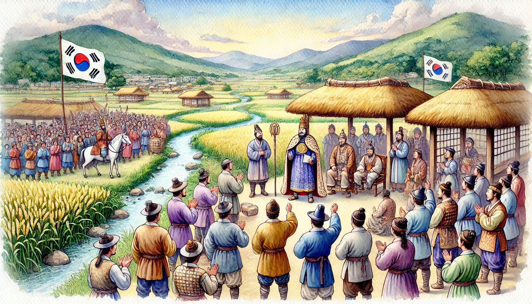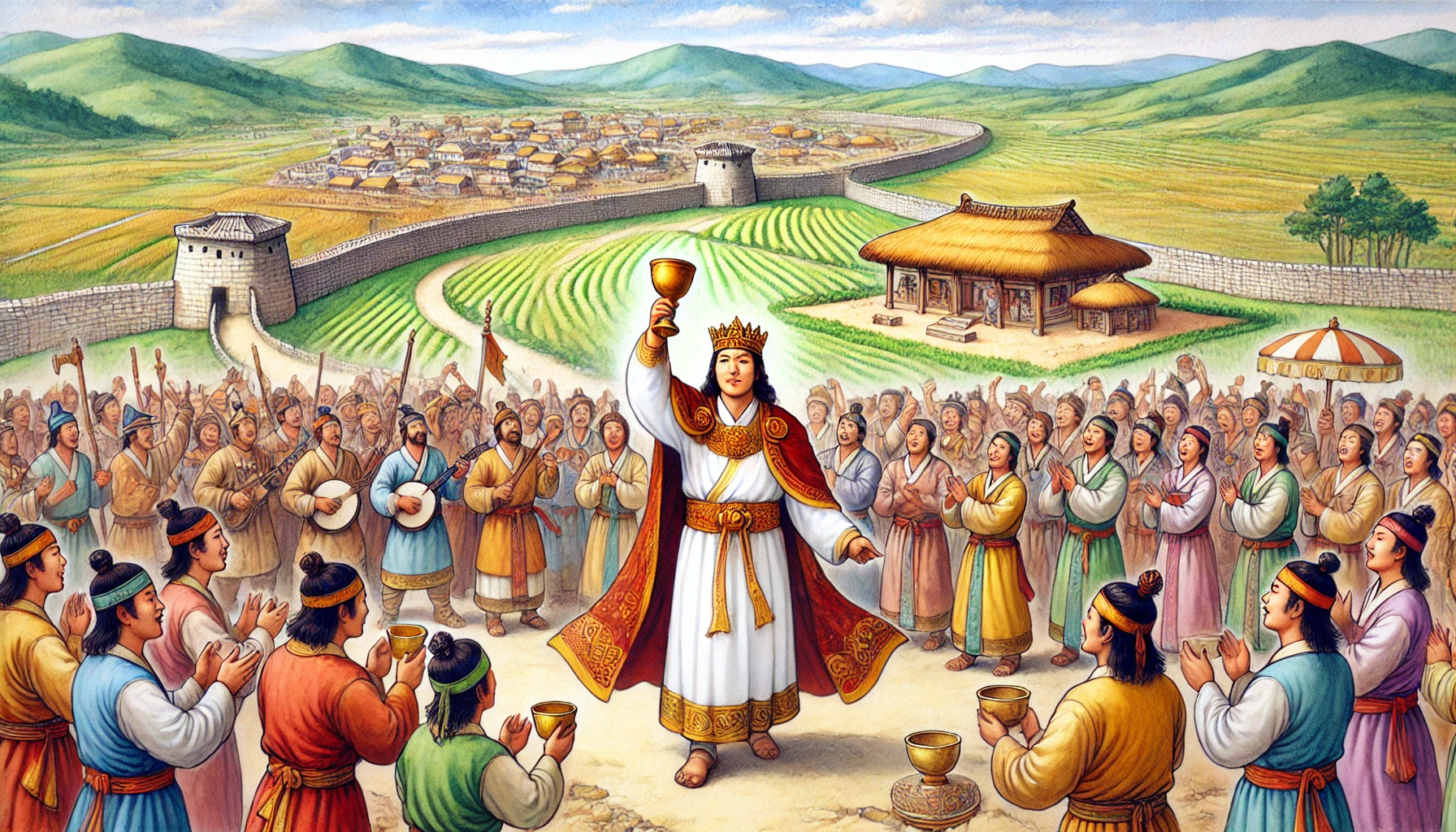 백성들은 그의 말을 듣고 환호했습니다. 그날 이후, 백제라는 이름은 그들의 새로운 국가의 이름으로 자리 잡았습니다. 마을은 점차 나라로 변모해갔고, 온조는 백제의 첫 번째 왕으로 백성을 이끌게 되었습니다.