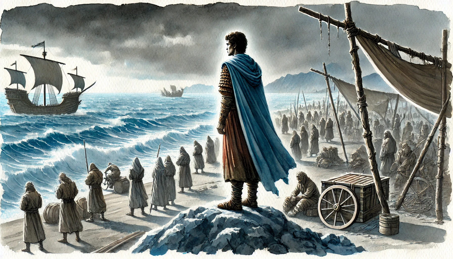 비류는 혼자 바닷가에 서서 멀리 바다를 응시했습니다. 그는 바다를 통해 얻을 수 있을 기회를 꿈꿨지만, 현실은 그의 기대와는 너무 달랐습니다. 밤이 되면 차가운 바람이 마을을 휩쓸었고, 사람들은 그 추위를 견디며 서로의 몸을 의지했습니다. 그러나 사람들 사이의 분위기는 점점 냉랭해져 갔습니다.