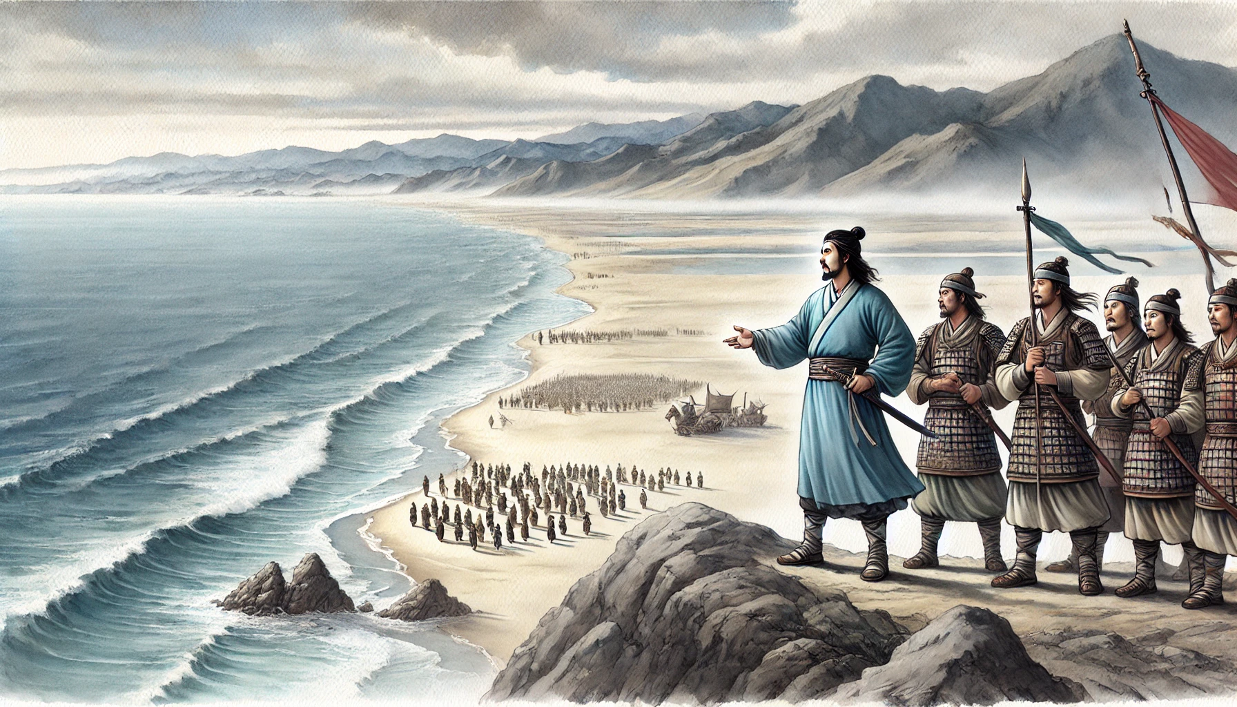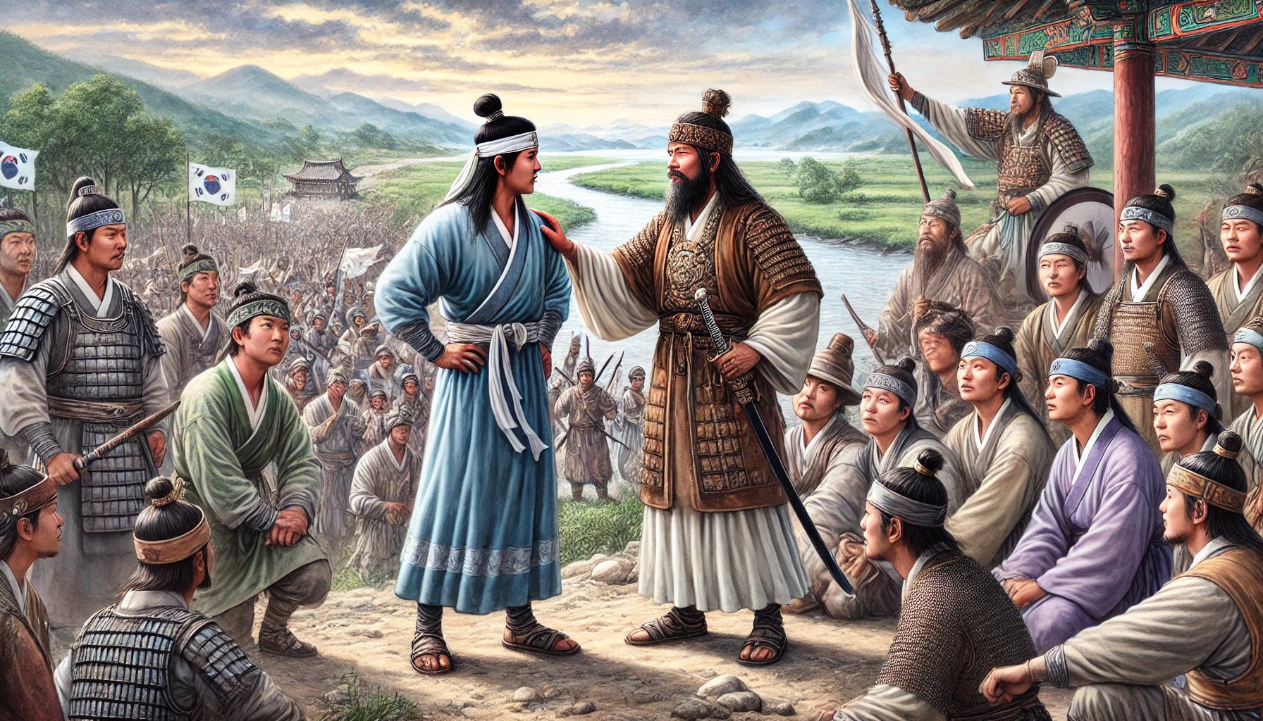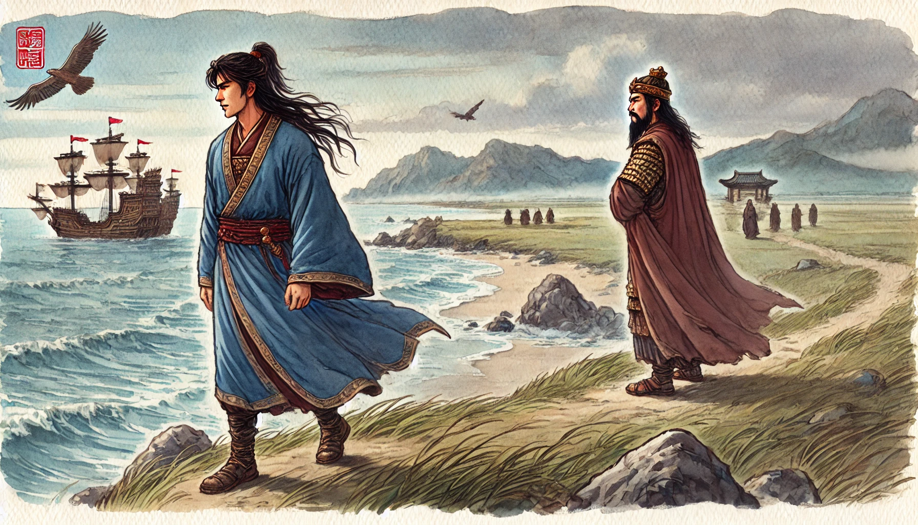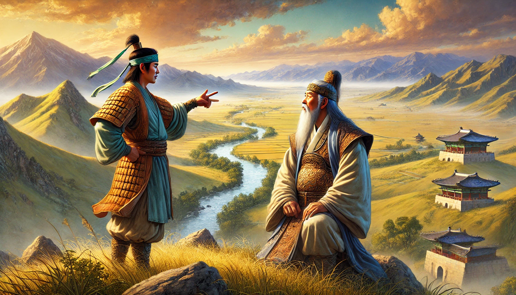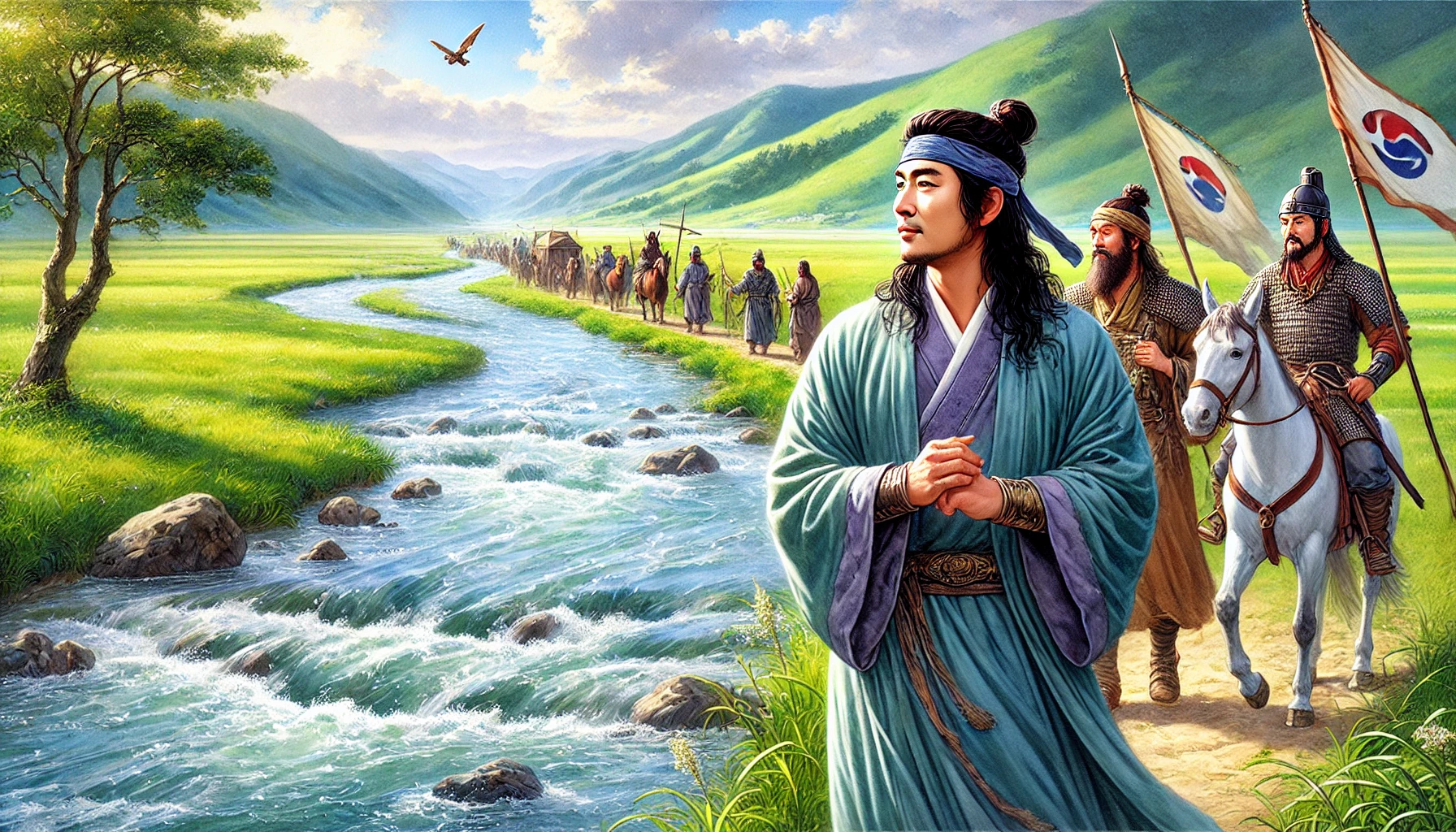 “형, 저기 멀리 보이는 바다 쪽으로 가보자. 저곳이야말로 우리가 꿈꿨던 새로운 나라를 세울 곳일 거야. 물길이 열려 있으니 교역도 활발할 테고, 바다가 우리를 지켜줄 거야.”