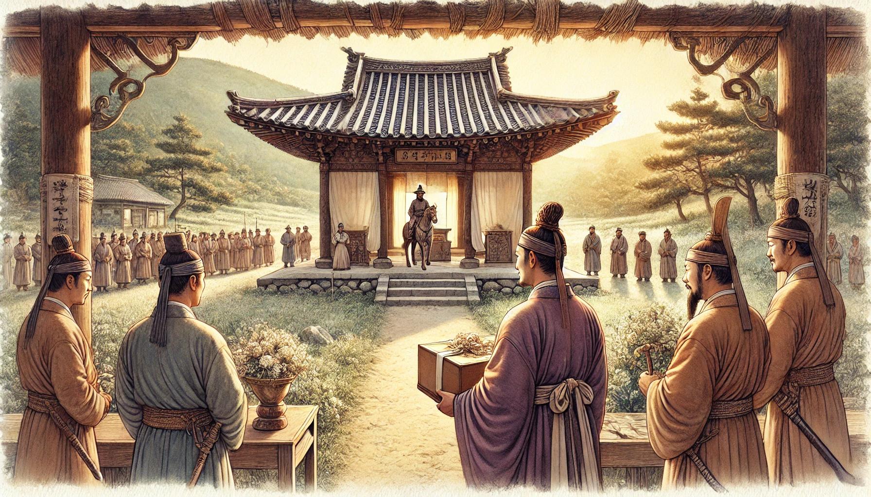 하늘은 구름으로 가득했지만, 형제의 발걸음은 단호하고 흔들림이 없었다. 그들의 선택은 단지 길을 달리하는 데서 끝나지 않았다. 그것은 백제를 향한 새로운 운명의 시작이었다. 그러나 서로 다른 선택이 가져올 결과는 그 누구도 예측할 수 없었다.