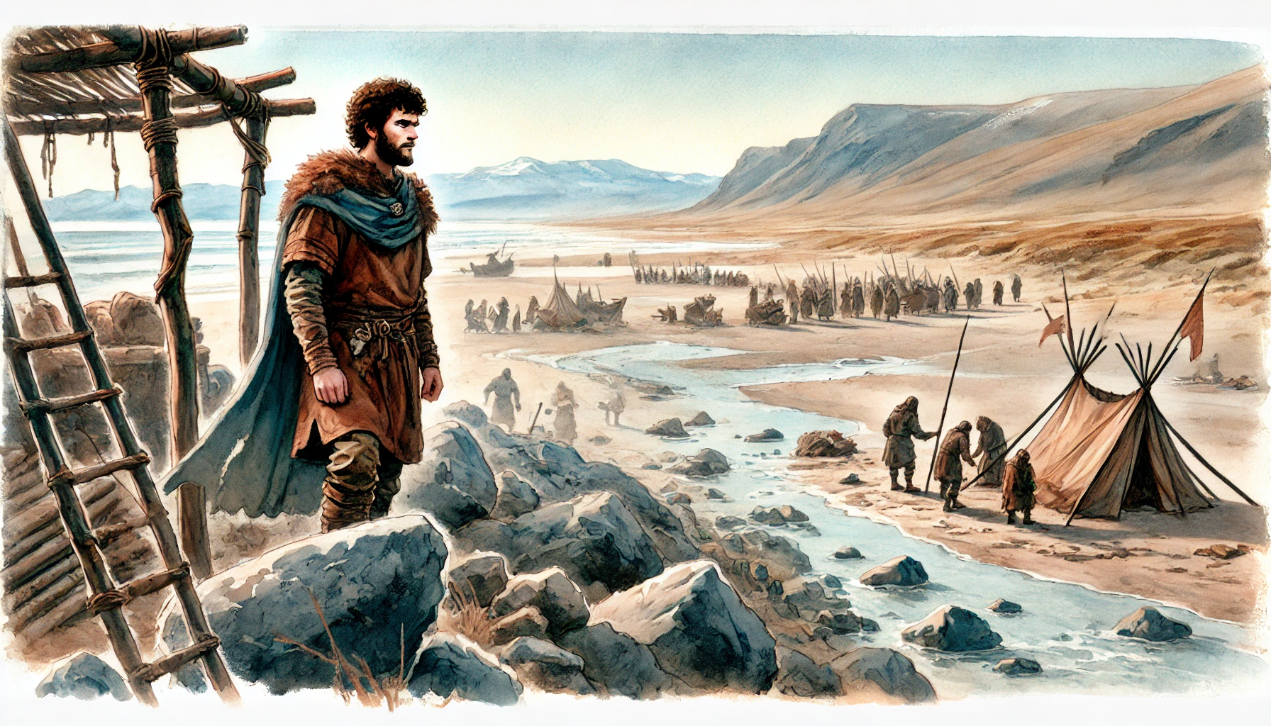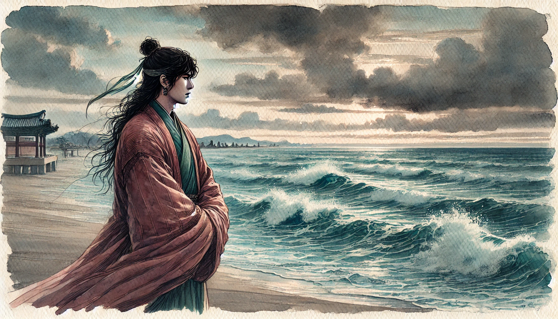 비류는 무리를 이끌고 바닷가로 향했습니다. 그의 목적지는 인천 미추홀, 바다와 가까운 척박한 땅이었습니다. 비류의 눈에는 그곳이 무한한 가능성을 품은 미지의 땅처럼 보였습니다. 바닷바람이 강하게 몰아쳤지만, 그는 개척자의 마음으로 가슴이 뛰었습니다.