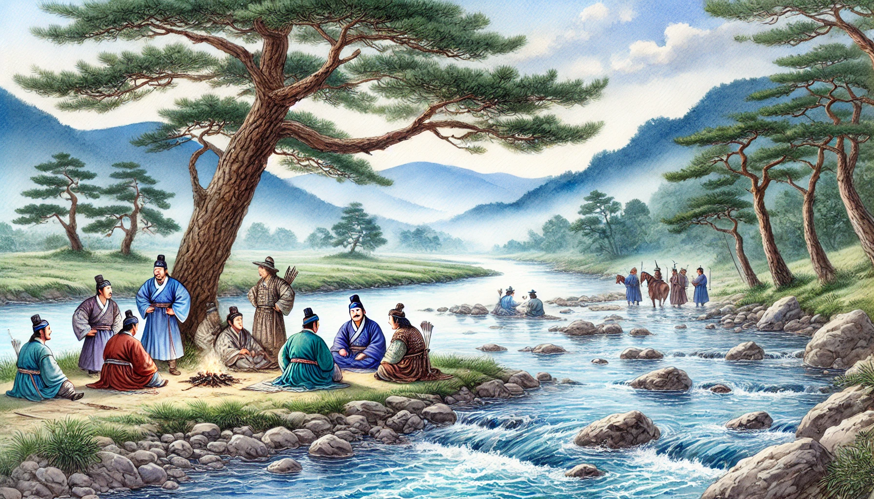 “이곳이 우리가 머물 곳이다,” 온조는 무리를 향해 단호히 선언했다. 그의 말에 사람들은 고개를 끄덕이며 안도감을 표했다. 여러 날의 고된 여정 끝에 도착한 이 땅은 그들에게 새로운 희망과 안식처가 될 것이 분명해 보였다.