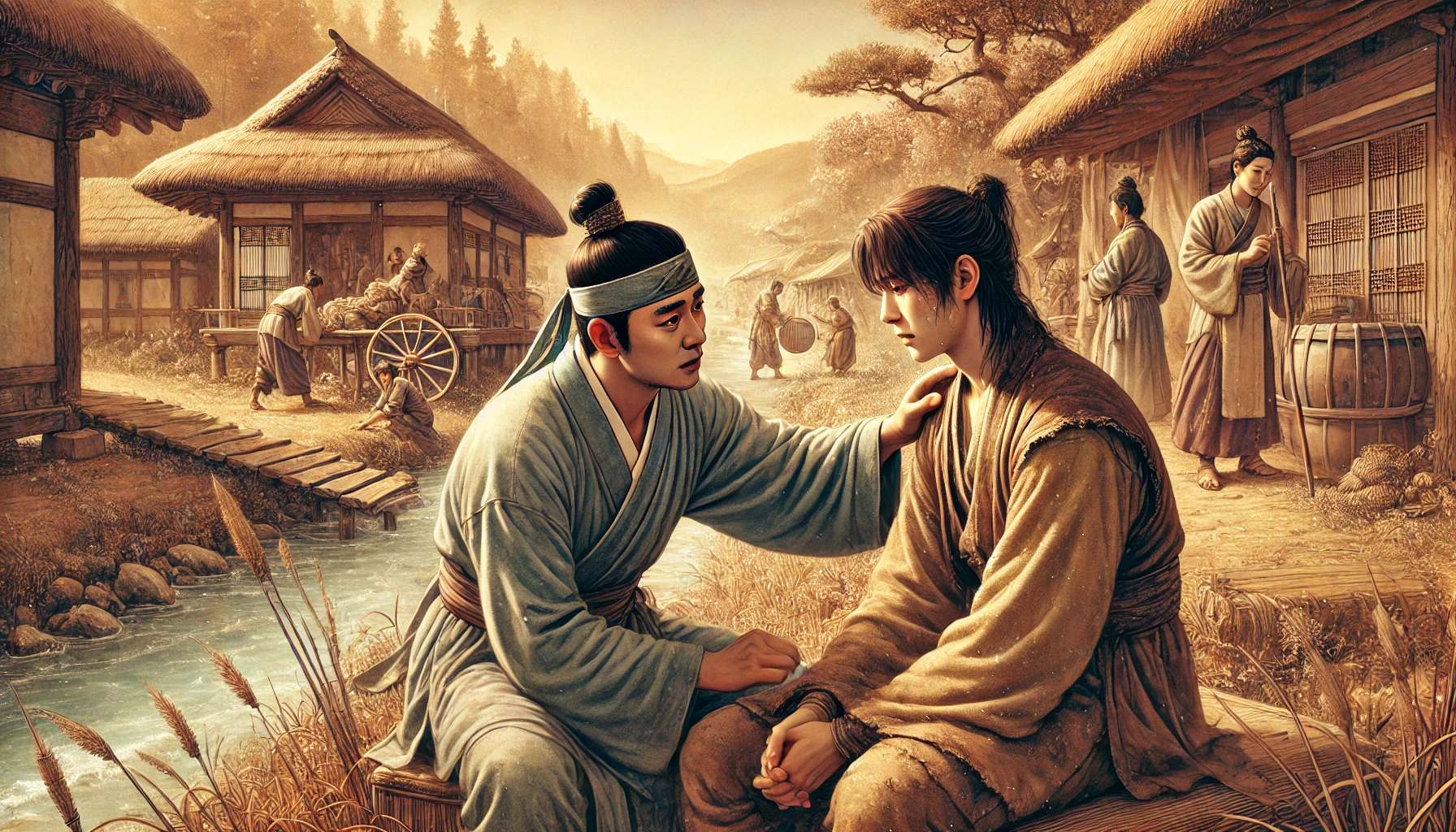 지친 몸을 이끌고 한강 유역의 온조가 있는 마을에 도착했을 때, 비류는 자신의 눈을 의심했다. 넓은 평야와 풍요로운 강이 마을 곳곳에 생명력을 불어넣고 있었다. 백성들은 활기차게 농사를 짓고, 수로를 통해 물을 공급받으며 안정된 삶을 누리고 있었다. 그 광경은 비류의 가슴을 더욱 아프게 했다.
