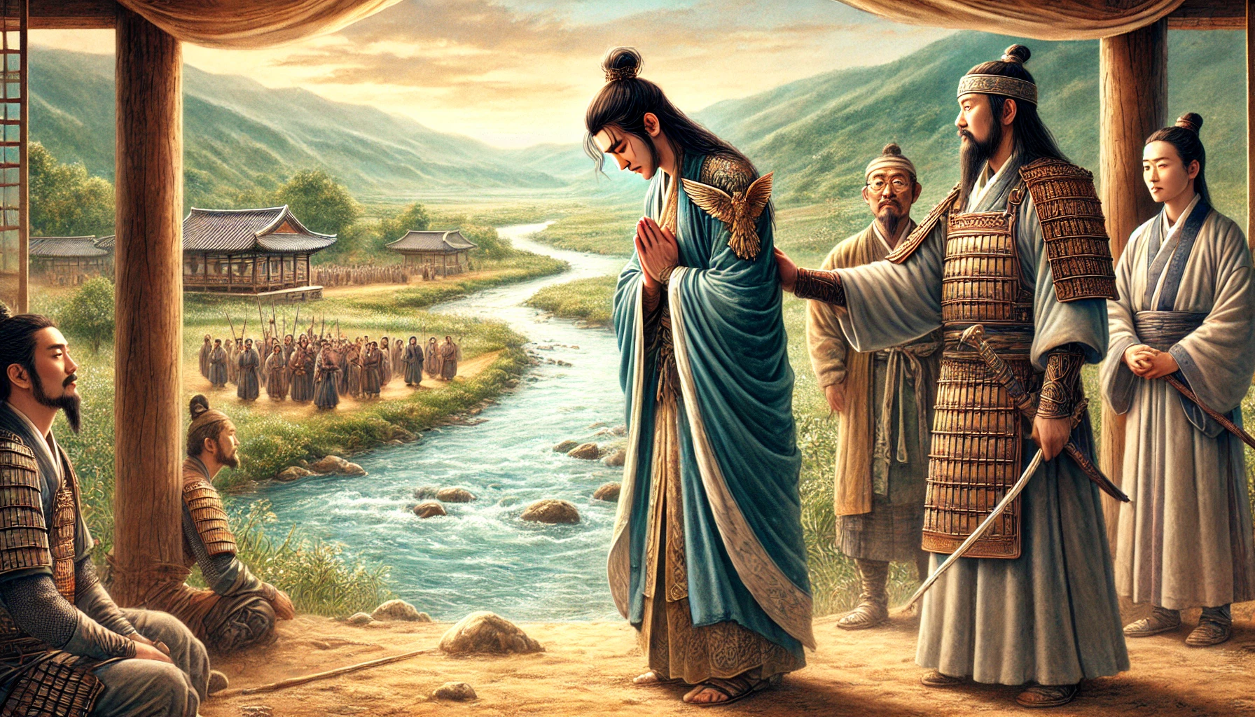 비류는 잠시 멈칫하더니 고개를 끄덕였다. 그러나 그의 눈빛 속에는 형과 다른 길을 선택하는 것에 대한 고집과 자부심이 섞여 있었다.