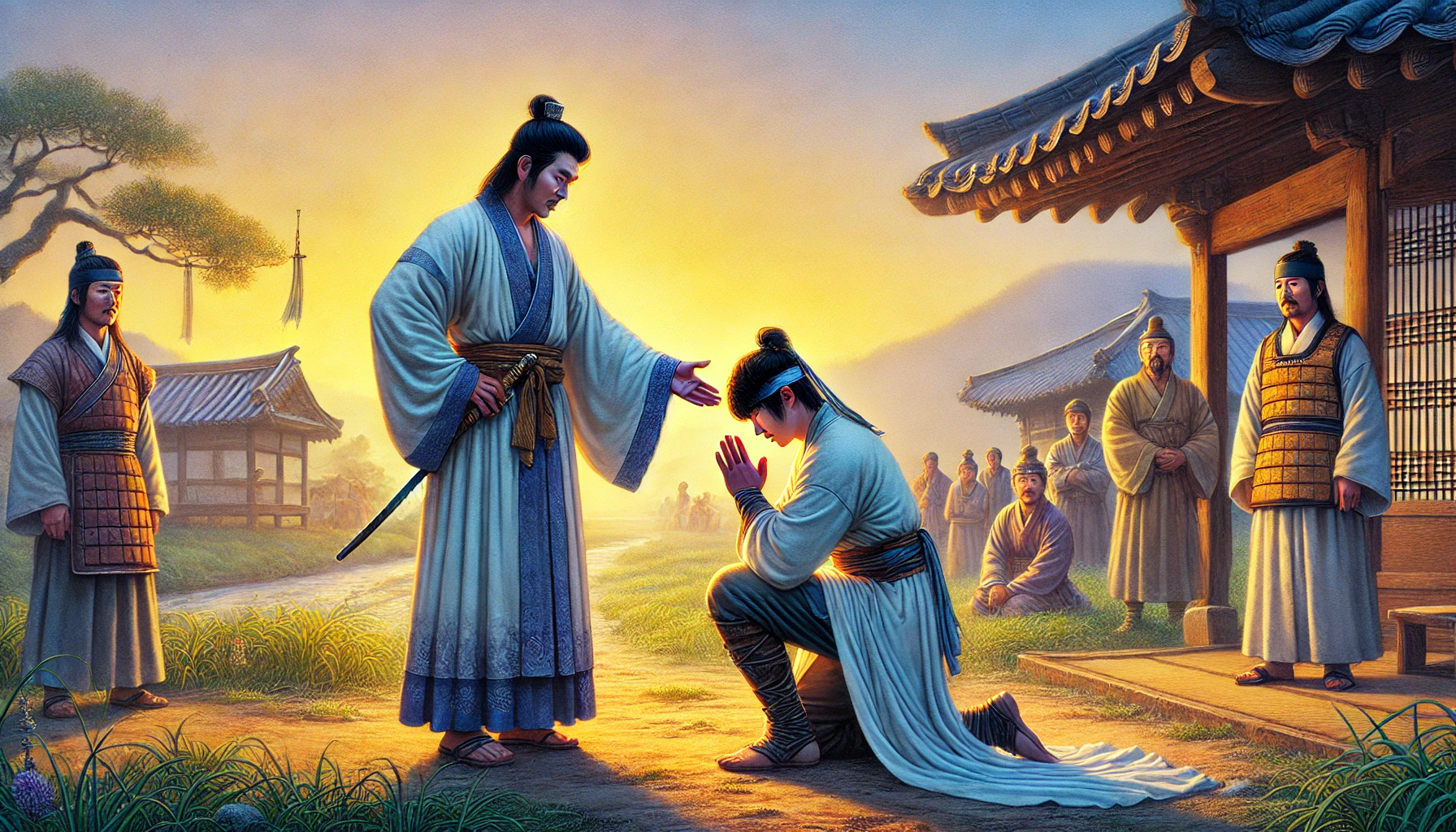비류는 형 앞에 무릎을 꿇으며 말없이 눈물을 흘렸다.