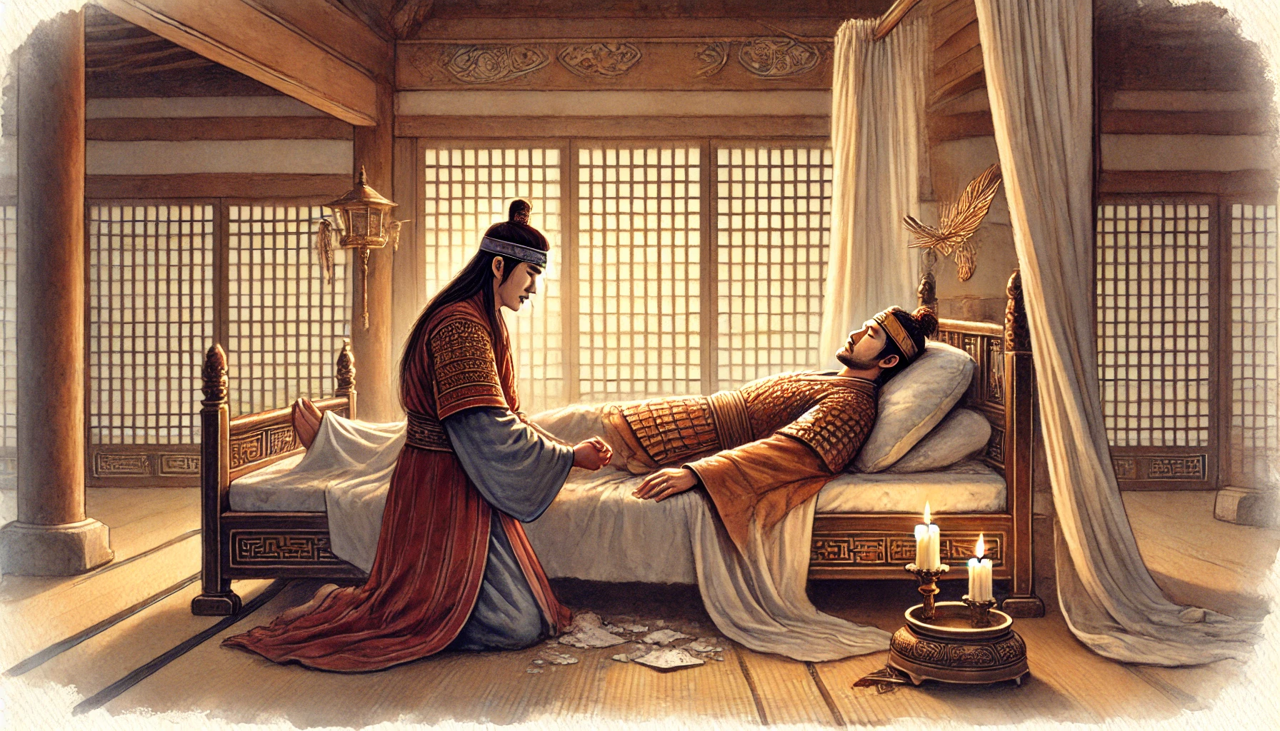 “형, 나는 실패했다. 나의 욕심과 자만이 모든 것을 망쳤다. 백성들은 고통받았고, 나는 그들을 구할 힘이 없었다. 나의 잘못을 용서해다오.”