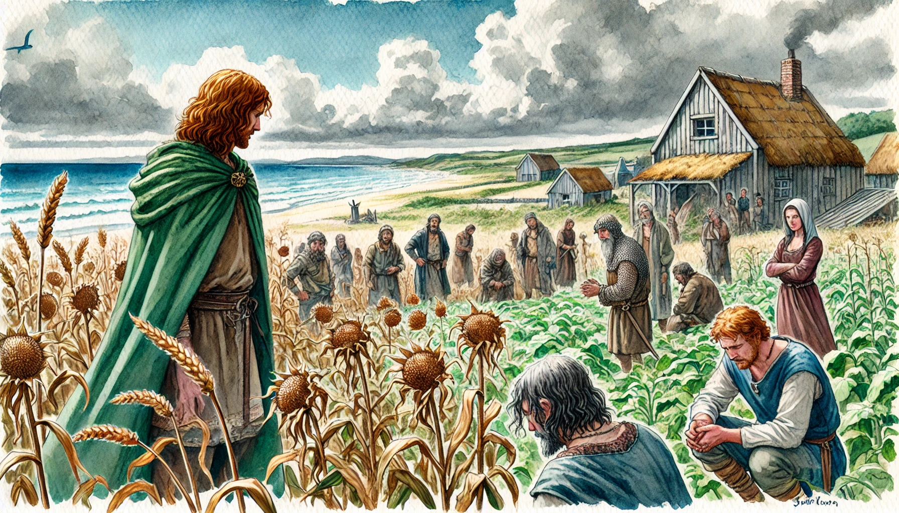비류는 희망을 잃지 않으려 애썼습니다. 그러나 그의 명령에 따라 수로를 파기 시작한 백성들은 점점 지쳐갔습니다. 바닷물은 짠맛이 강해 농사에 사용할 수 없었고, 수로를 팠지만 땅이 메마른 것은 변하지 않았습니다. 백성들은 차츰 비류의 지도력에 의구심을 품기 시작했습니다.
