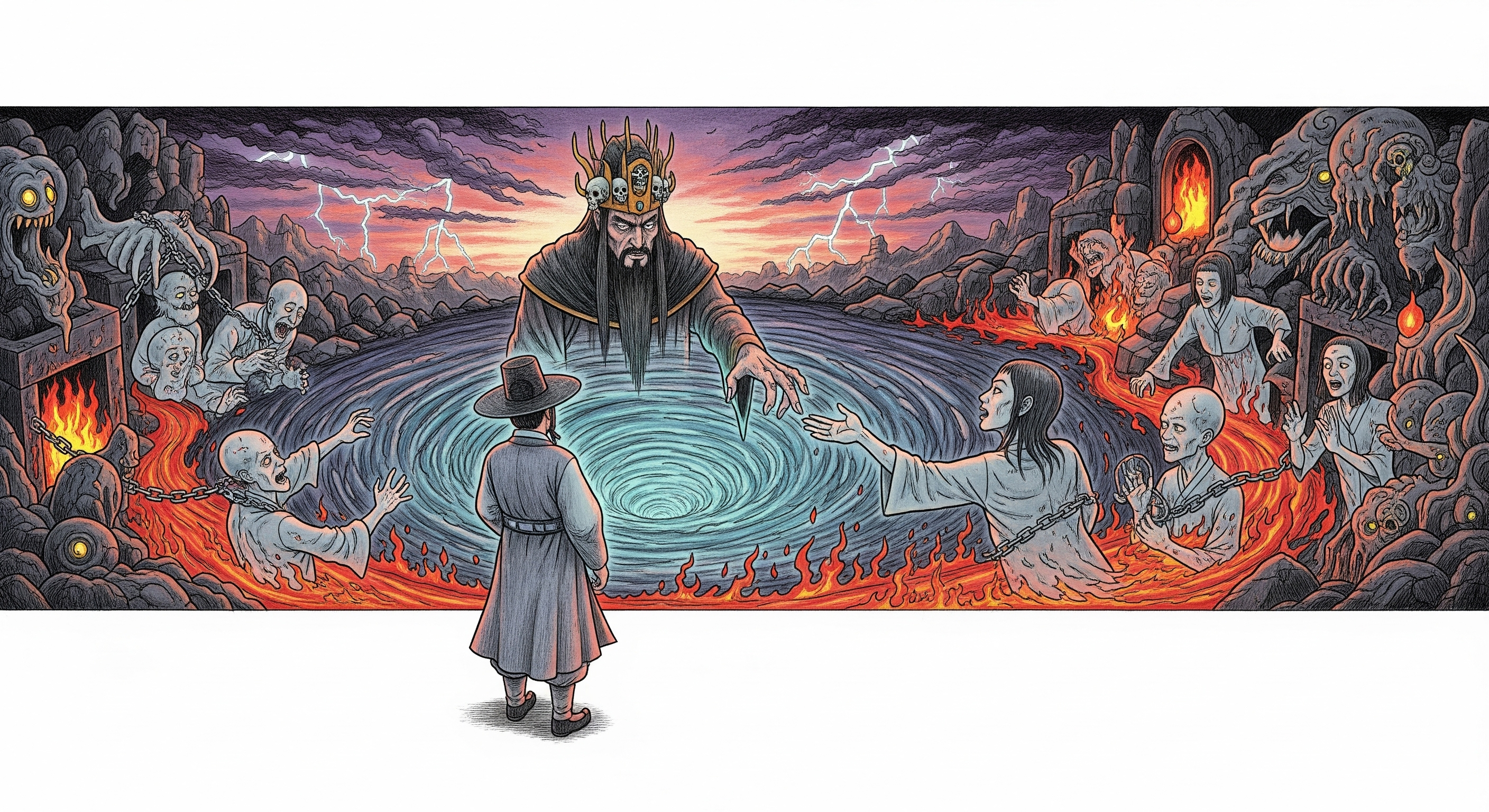 #조선시대, #염라대왕, #염라청, #저승, #초대, #무서운이야기, #전설, #야담, #죽음, #운명, #심판, #선악, #여름괴담, #오싹한이야기, #무더위, #서늘한이야기, #시니어콘텐츠, #전통이야기, #한국전설, #민담