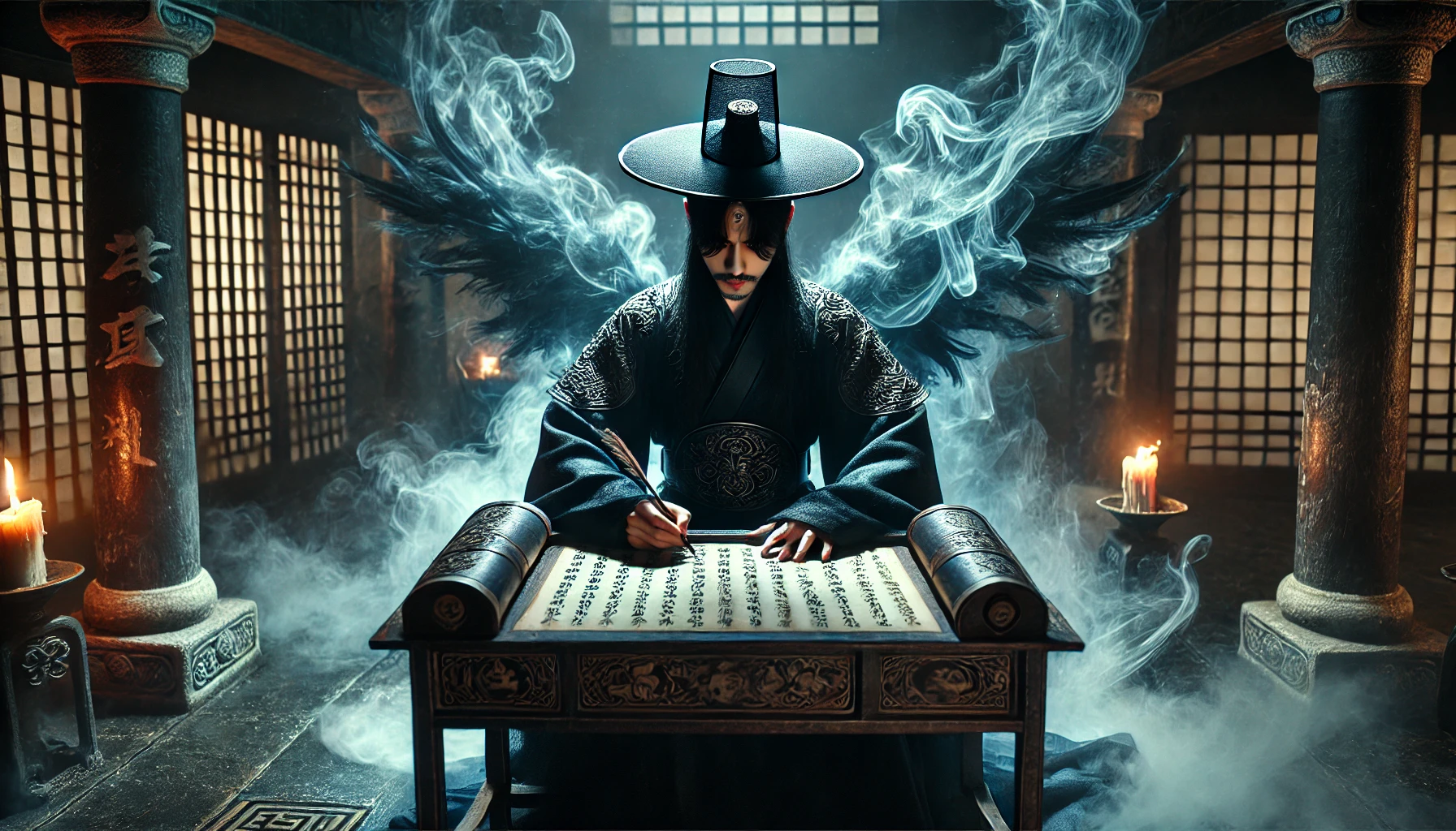 "무슨 실수를 저질렀느냐?" 송제대왕이 묻자, 이필은 땀을 흘리며 대답했습니다. "생사부에... 검은 잉크로 이름을 써버렸습니다. 빨간 잉크 대신..." 그의 말이 채 끝나기도 전에 관청이 발칵 뒤집어졌습니다.