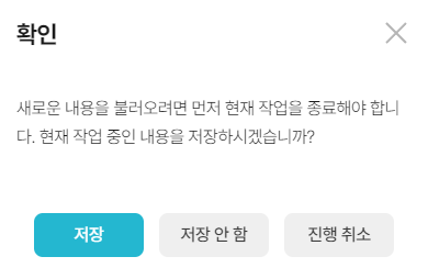 이전에 사용한 프로젝트의 저장 여부를 묻는 창