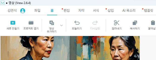이렇게 작성된 2개의 대본파일을 가지고 vrew에가서