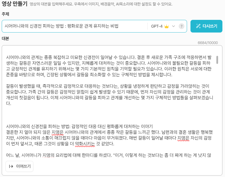 동영상 대본 만들기는 원클릭 SEO 최적화 글 생성기에서 나온글의 제목1을 이용하여