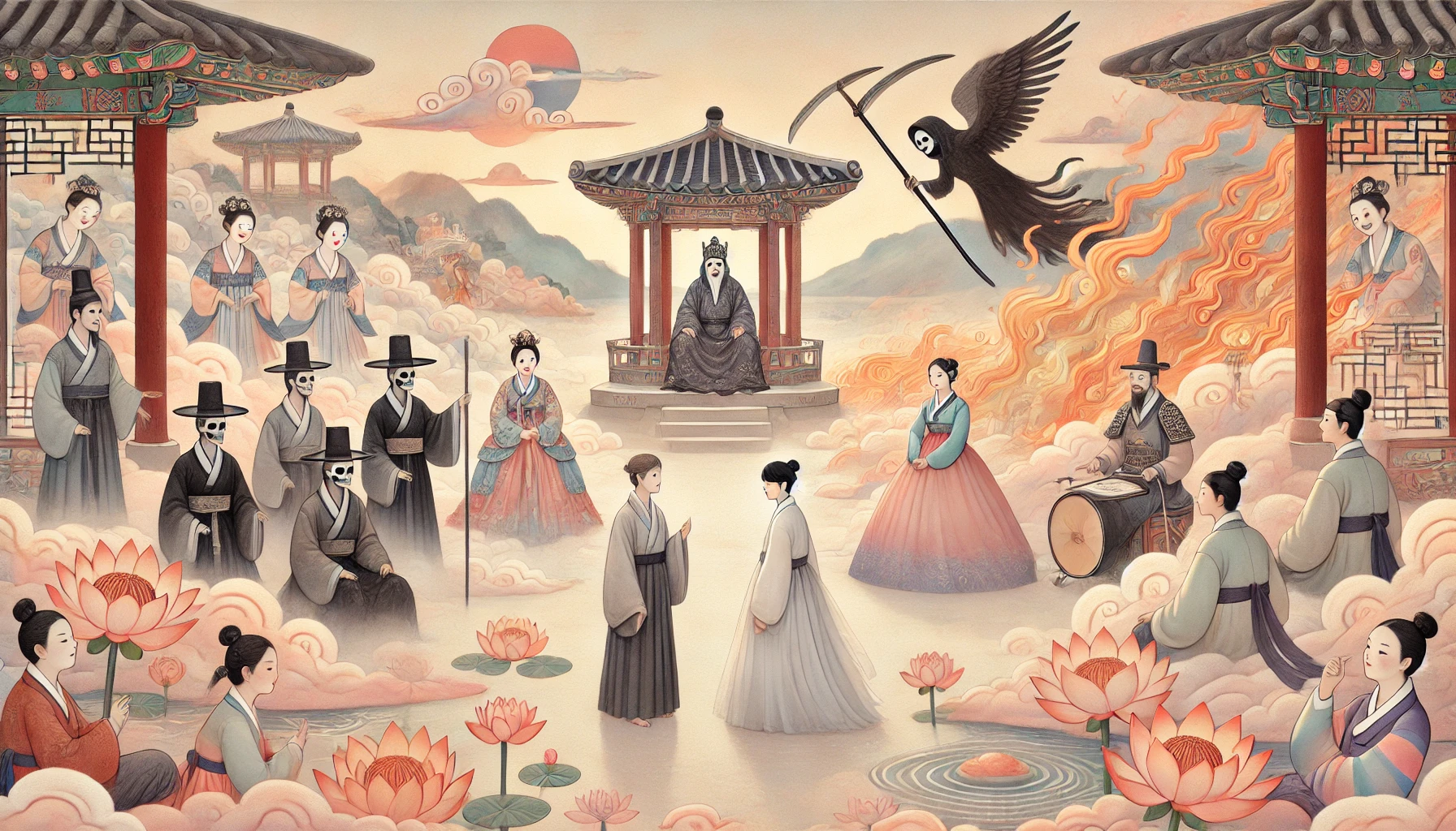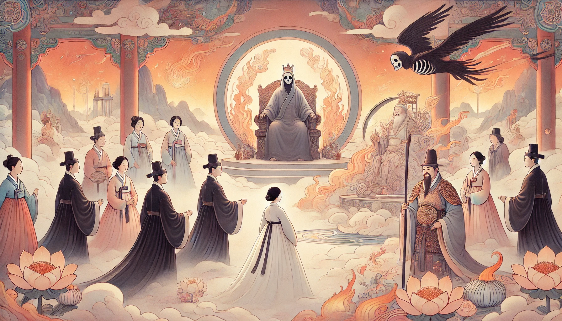 그의 옆에는 검은 도포를 입은 저승사자가 서 있었다. 얼굴은 창백했지만, 눈빛은 따뜻했다. 민간에서 전해지는 무서운 저승사자의 모습과는 달랐다.
