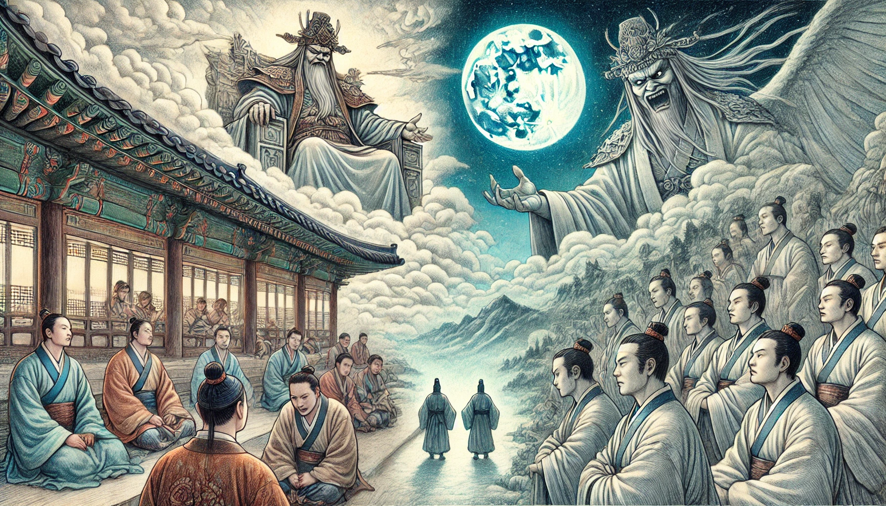 때는 조선 중기, 세상이 어수선하고 도덕이 무너져가던 시절이었습니다. 저승 십왕 중 으뜸인 염라대왕께서 높은 보좌에 앉아 인간 세상을 내려다보고 계셨는데, 그 얼굴에는 깊은 분노가 서려 있었습니다.