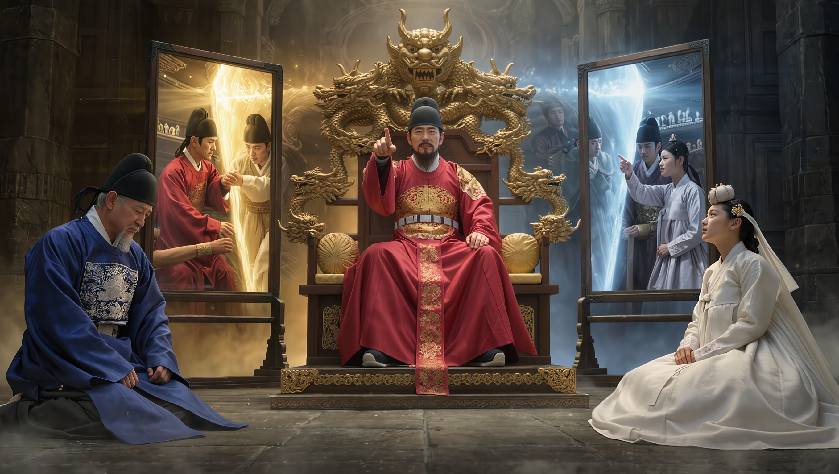 그런데 저승의 업경은 달랐습니다. 이 거울은 인간의 힘으로 조작할 수 없는 절대적 증거 장치였습니다. 누가 뇌물을 바친다고 거울의 내용이 바뀌지 않았습니다. 누가 거짓 증인을 세운다고 거울이 다른 장면을 보여주지 않았습니다. 있었던 일은 있었던 대로, 없었던 일은 없었던 대로 정확하게 비추었습니다. 이것이야말로 백성들이 꿈꾸던 완벽한 증거 체계였습니다. 진실을 왜곡할 수 없는, 권력으로도 돈으로도 바꿀 수 없는 절대적 기록장치. 이승에서는 상상조차 할 수 없는 것이었기에, 저승의 장치로 상상해낸 것입니다.