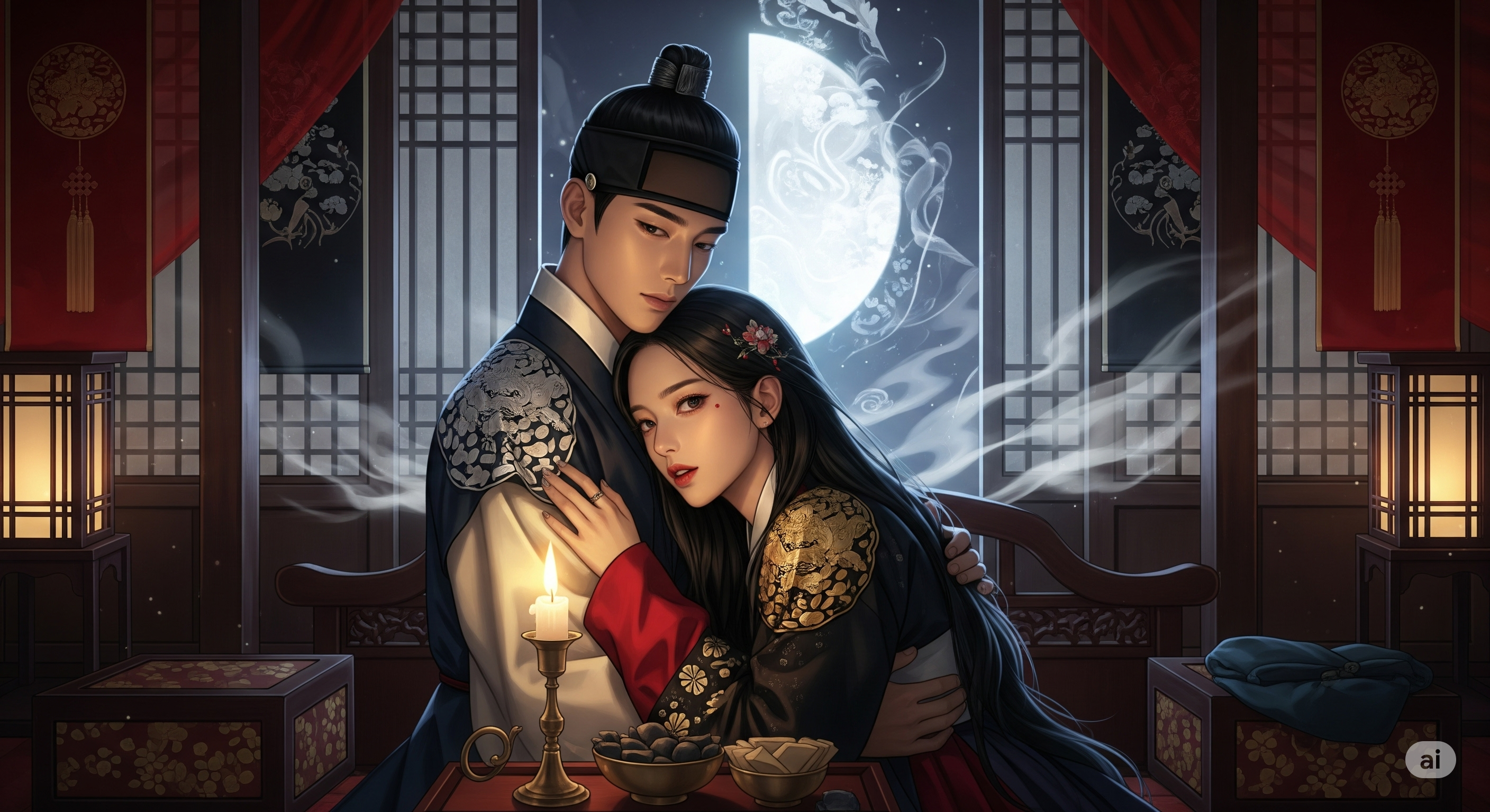 저승에서의 기묘한 신혼 첫날밤이 지나고, 이선우는 아내 연희와 함께 이승으로 돌아왔다. 염라대왕은 그에게 어마어마한 재물을 하사했다. 저승의 보물로 가득 찬 궤짝들은, 평생을 써도 마르지 않을 만큼의 부였다. 남산골의 다 쓰러져가던 초가집은 순식간에 한양에서 가장 크고 화려한 기와집으로 바뀌었고, 가난한 선비 이선우는 하루아침에 대감 소리를 듣는 큰 부자가 되었다. 그의 삶은 완전히 뒤바뀌었다. 매일같이 맛있는 음식과 값비싼 옷을 즐겼고, 수많은 하인들이 그의 시중을 들었다. 그리고 그의 곁에는 그림처럼 아름다운 아내, 연희가 있었다. 그녀는 이승의 햇빛 아래에서도 여전히 창백하고 말이 없었지만, 그 모습마저 신비롭게 보여 사람들의 부러움을 샀다. 이선우는 이 모든 것이 꿈만 같았다. 그는 아내 연희를 진심으로 사랑하게 되었다. 그는 그녀의 공허한 눈빛 속에서 슬픔을 보았고, 차가운 피부 아래 감춰진 외로움을 느꼈다. 그는 자신의 사랑으로 그녀를 행복하게 만들어주고 싶었다. 그는 매일 밤, 그녀를 품에 안고 사랑을 속삭였다. 그의 뜨거운 열기는 그녀의 차가운 몸을 조금씩 녹여주는 듯했다. 처음에는 인형처럼 그의 모든 것을 받아내기만 하던 그녀도, 점차 그의 애무에 반응을 보이기 시작했다. 그녀의 입에서 새어 나오는 신음은 조금씩 열기를 띠었고, 그의 품에 안기는 그녀의 몸짓에는 수줍은 애정이 담겨 있었다. 이선우는 그 미세한 변화에 기쁨을 느끼며, 더욱더 그녀에게 정성을 쏟았다. 하지만 그들의 행복한 신혼생활에는, 반드시 지켜야만 하는 몇 가지 기묘하고도 섬뜩한 규칙이 있었다. 이승으로 돌아오던 날, 연희가 그에게 나직이 말해주었던 저승의 규칙이었다. 첫째, 절대로 그녀의 과거, 즉 저승에서의 삶에 대해 묻지 말 것. 둘째, 그녀가 저승에서 가져온 검은 옻칠 상자를 절대로 열어보지 말 것. 그리고 마지막 셋째, 자시(子時)가 지난 깊은 밤에는, 절대로 침실에 환한 촛불을 켜지 말 것. 특히 마지막 규칙은 그녀가 가장 강조했던 것이었다. "서방님, 다른 것은 다 잊으셔도 좋습니다. 허나 이 마지막 약조만큼은, 목숨을 걸고 지켜주셔야 합니다. 만약 이 금기를 어기신다면, 우리 두 사람의 인연은 그날로 끝이 날 것입니다." 이선우는 그녀와의 행복을 지키기 위해, 그 규칙들을 마음 깊이 새겼다. 그는 그녀의 과거를 궁금해하지 않으려 애썼고, 침실 구석에 놓인 검은 상자는 없는 물건처럼 취급했다. 밤이 깊어지면, 그는 어둠 속에서 오직 서로의 감촉과 숨결에만 의지하여 사랑을 나누었다. 어둠 속에서 그녀의 몸은 더욱 민감하게 반응했고, 그녀의 차가운 피부는 오히려 신비로운 매력으로 다가왔다. 어둠은 두 사람의 비밀을 지켜주는 포근한 장막과도 같았다. 그렇게 겉으로 보기에는 완벽한 신혼생활이 흘러가고 있었다. 막대한 부, 아름다운 아내, 남 부러울 것 없는 행복. 하지만 이선우의 마음 한편에서는, 아내에 대한 의문과 호기심이 독버섯처럼 조금씩 자라나고 있었다. 그녀는 왜 과거를 숨기는 것일까. 저 검은 상자 안에는 무엇이 들어있을까. 그리고 왜, 그녀는 한밤중에 자신의 얼굴을 촛불로 비추는 것을 그토록 두려워하는 것일까. 사랑이 깊어질수록, 그녀에 대한 모든 것을 알고 싶다는 인간적인 욕망 또한 함께 깊어지고 있었다. 그 욕망이, 머지않아 끔찍한 비극의 씨앗이 될 것임을 그는 아직 알지 못했다.
