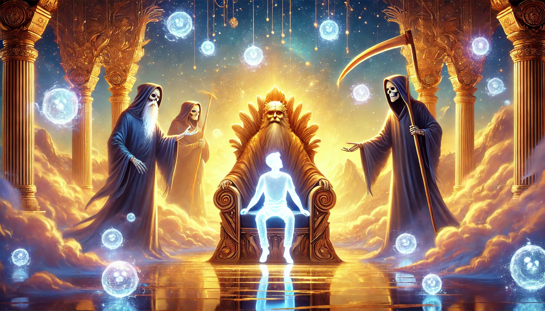 그 순간, 저승의 하늘이 흔들리며 거대한 빛의 원이 떠올랐다. 되돌이의식이 시작되자, 남자의 혼이 다시 저승에서 불러내어졌다.
