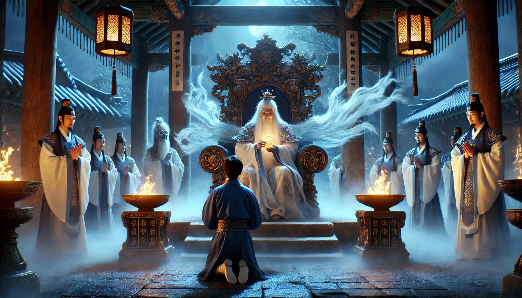 거대한 전각 앞에 선 이몽석은 무릎이 떨렸다. 문이 열리고 그는 저승사자에 이끌려 안으로 들어갔다. 넓은 홀에는 수많은 관리들이 분주히 움직이고 있었고, 책상마다 두꺼운 장부들이 쌓여 있었다. 그들은 모두 죽은 자들의 생전 행적을 기록하고 계산하는 것처럼 보였다.