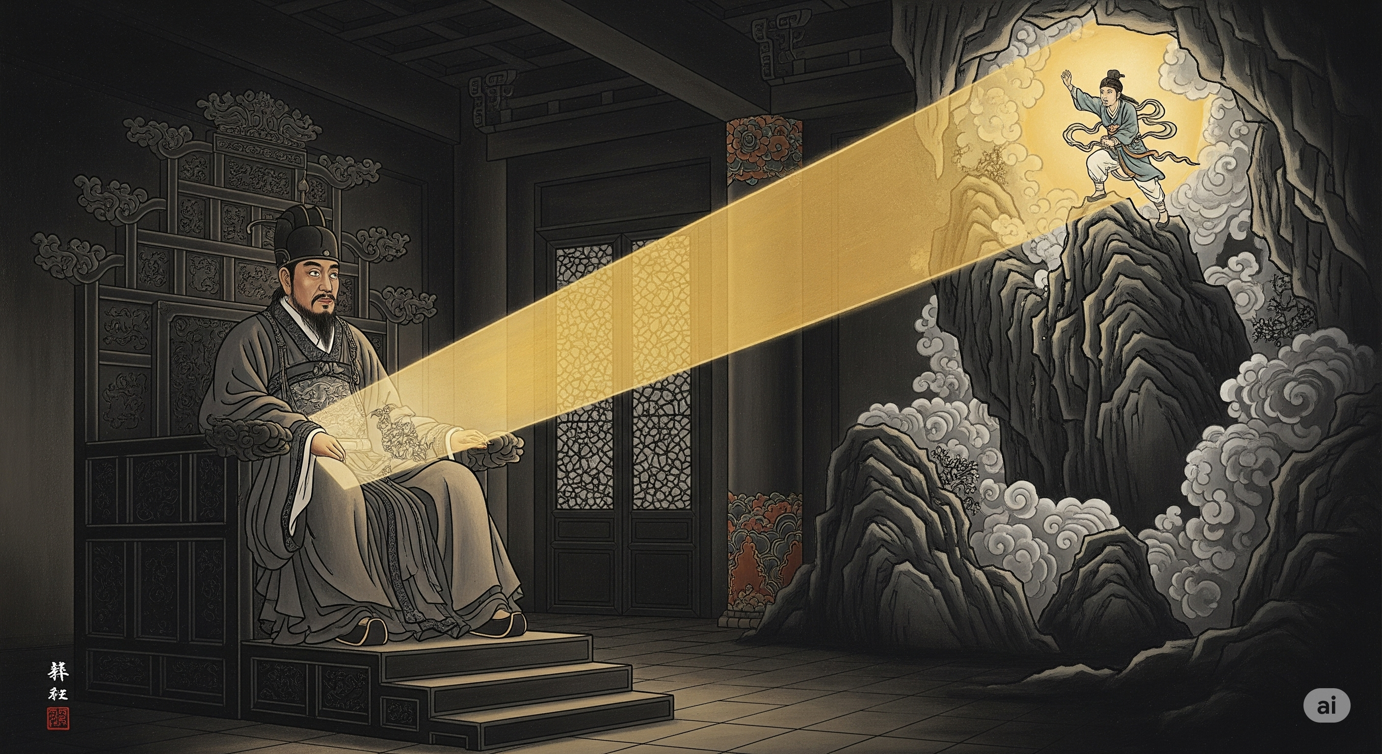 염라대왕은 잠시 눈을 감고 그 기운의 근원을 더듬었습니다. 과연, 멀고 먼 인간 세상의 험준한 산맥 어딘가에서 한 젊은이가 자신의 모든 것을 내던지며 부모를 살리려는 처절한 몸부림을 치고 있는 모습이 어렴풋이 느껴졌습니다. 그의 효심은 너무나도 깊고 순수하여, 그 자체로 하나의 거대한 빛이 되어 저승에까지 그 존재감을 드러내고 있었던 것입니다.