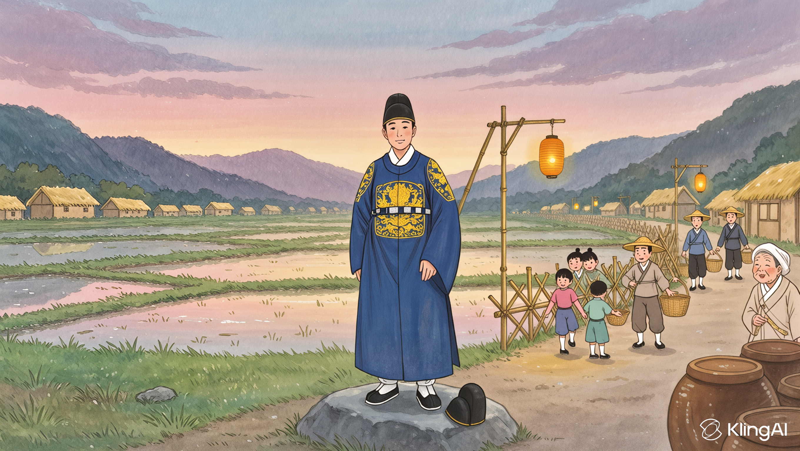 한편, 인간이 된 염라대왕은 조선의 한 마을에 도착했습니다. 처음 경험하는 인간의 몸이 신기했습니다. "배가 고프다는 게 이런 느낌인가?" 천 년 동안 배고픔을 느껴본 적이 없었는데, 이제는 평범한 인간처럼 음식이 필요했습니다.
