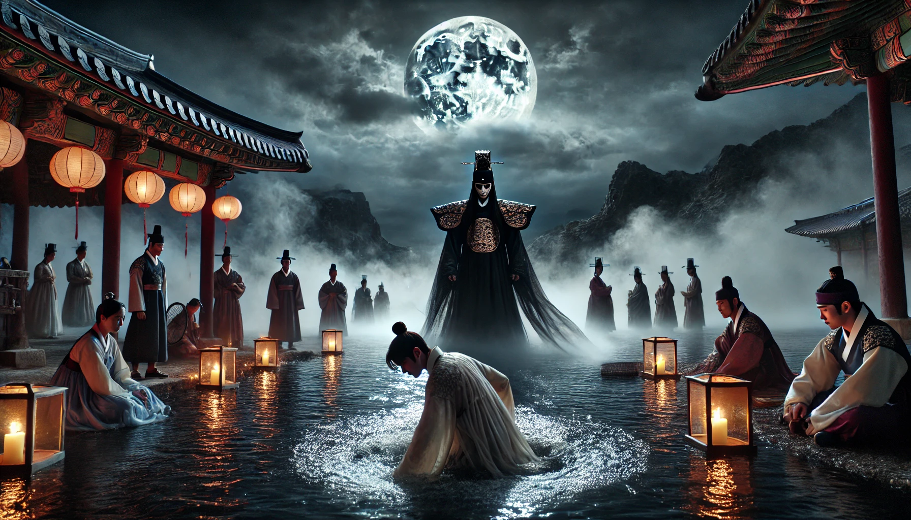 하지만 바로 그 순간, 갑자기 강물이 요동치기 시작했습니다. 검푸른 물이 먹물처럼 검게 변하더니, 강 위에 하얀 안개가 피어올랐습니다.