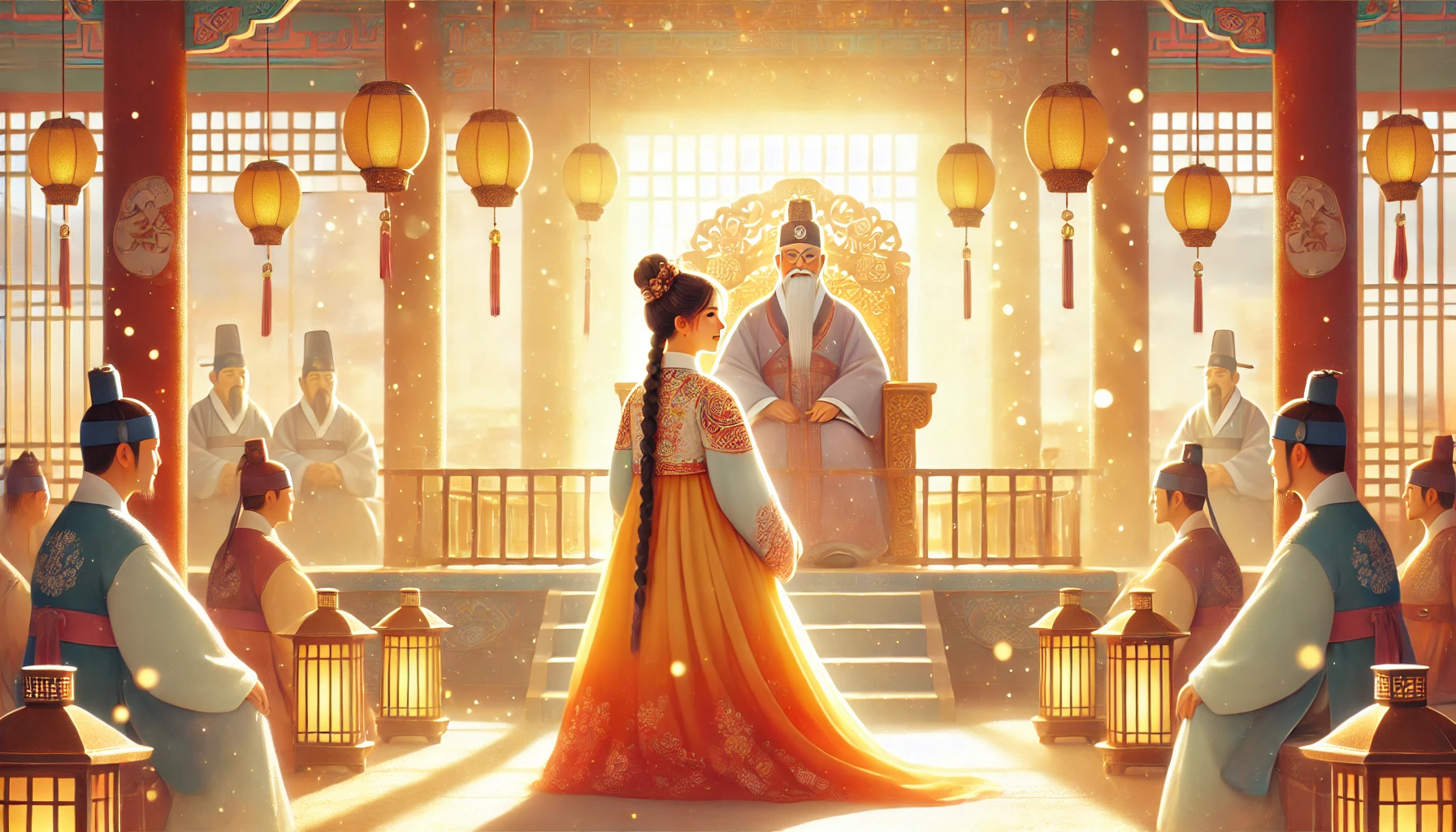 "대왕님, 제 시어머니께서는 평생 한 가지 큰 아픔을 가지고 계셨습니다. 바로 자신의 첫 번째 며느리를 잃은 슬픔이었어요."
