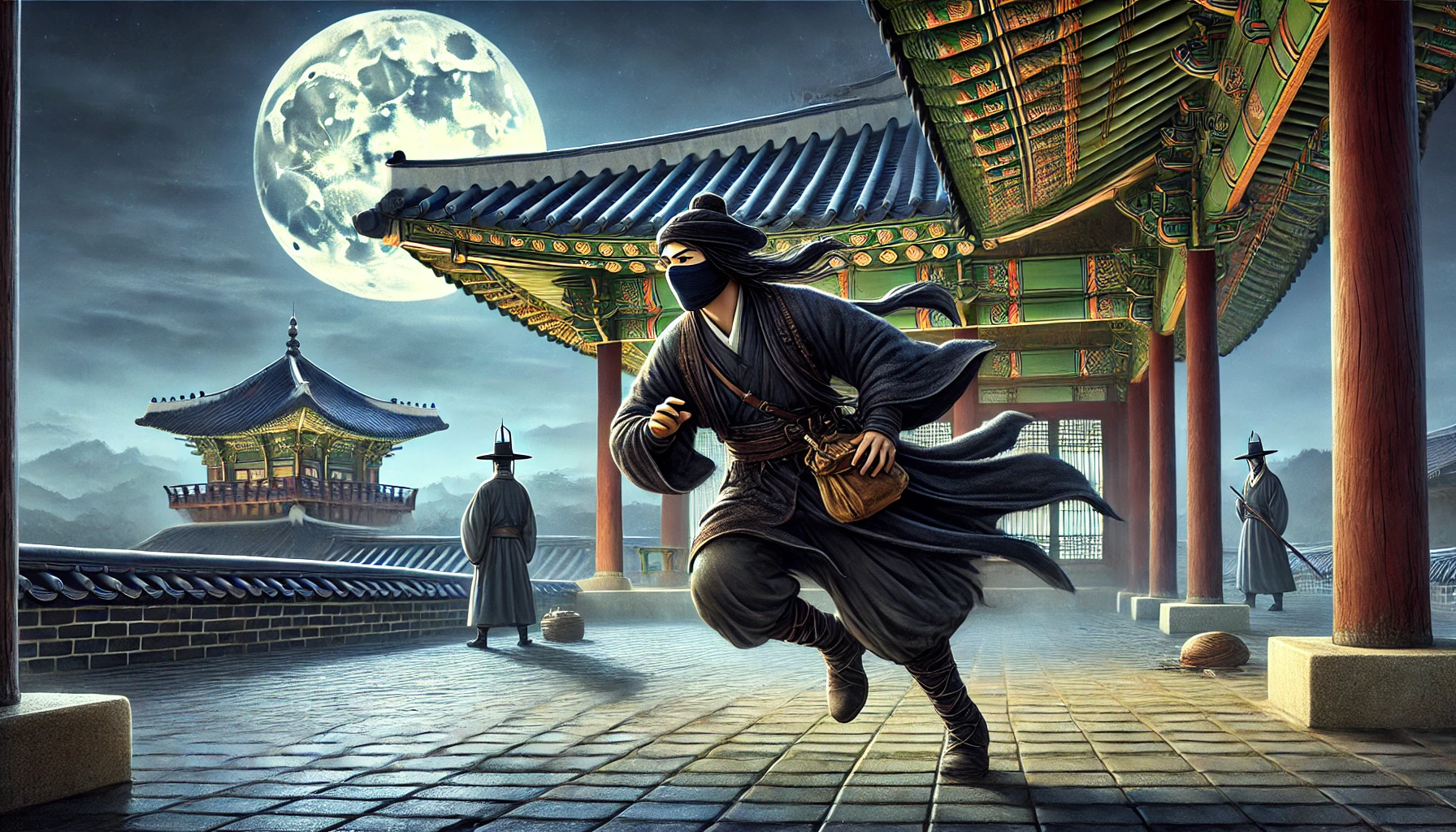 조선 땅에 밤이 내리고 인적이 끊기면, 술 취한 양반들의 호기로운 목소리도, 고단한 아낙의 다듬이질 소리도 모두 달빛 아래 잠겨들면, 그때부터는 법이 아닌 다른 존재의 시간이었다. 사람들은 그 존재를 감히 입에 담기를 두려워하면서도, 한편으론 은근히 기다리는 마음으로 속삭이곤 했다. 바로 ‘그림자 도둑’ 배천동(裵千童)에 대한 이야기였다. 어떤 이는 그가 축지법을 쓰는 신선이라 했고, 또 어떤 이는 원한을 품고 죽은 귀신이라 했다. 하지만 분명한 것은, 그는 존재하되 보이지 않았고, 훔치되 가난한 자의 것은 탐하지 않았다는 사실이다. 그의 발길이 머무는 곳은 오직 단 한 부류, 썩을 대로 썩어 악취를 풍기는 탐관오리와 위선자들의 곳간뿐이었다.