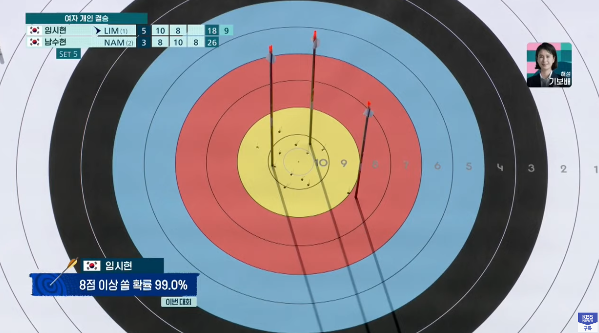 이로써 결승전은 임시현과 남수현이 금메달을 놓고 맞붙게 됐다. 누가 이기건 간에 한국은 금메달과 은메달을 예약했다.