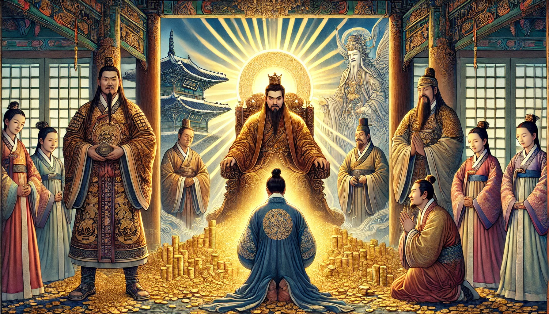 창밖으로 가난한 사람들의 신음소리가 들려왔지만, 김대감의 귀에는 들리지 않았습니다. 오직 동전이 부딪히는 소리만이 그에게는 아름다운 음악이었습니다.