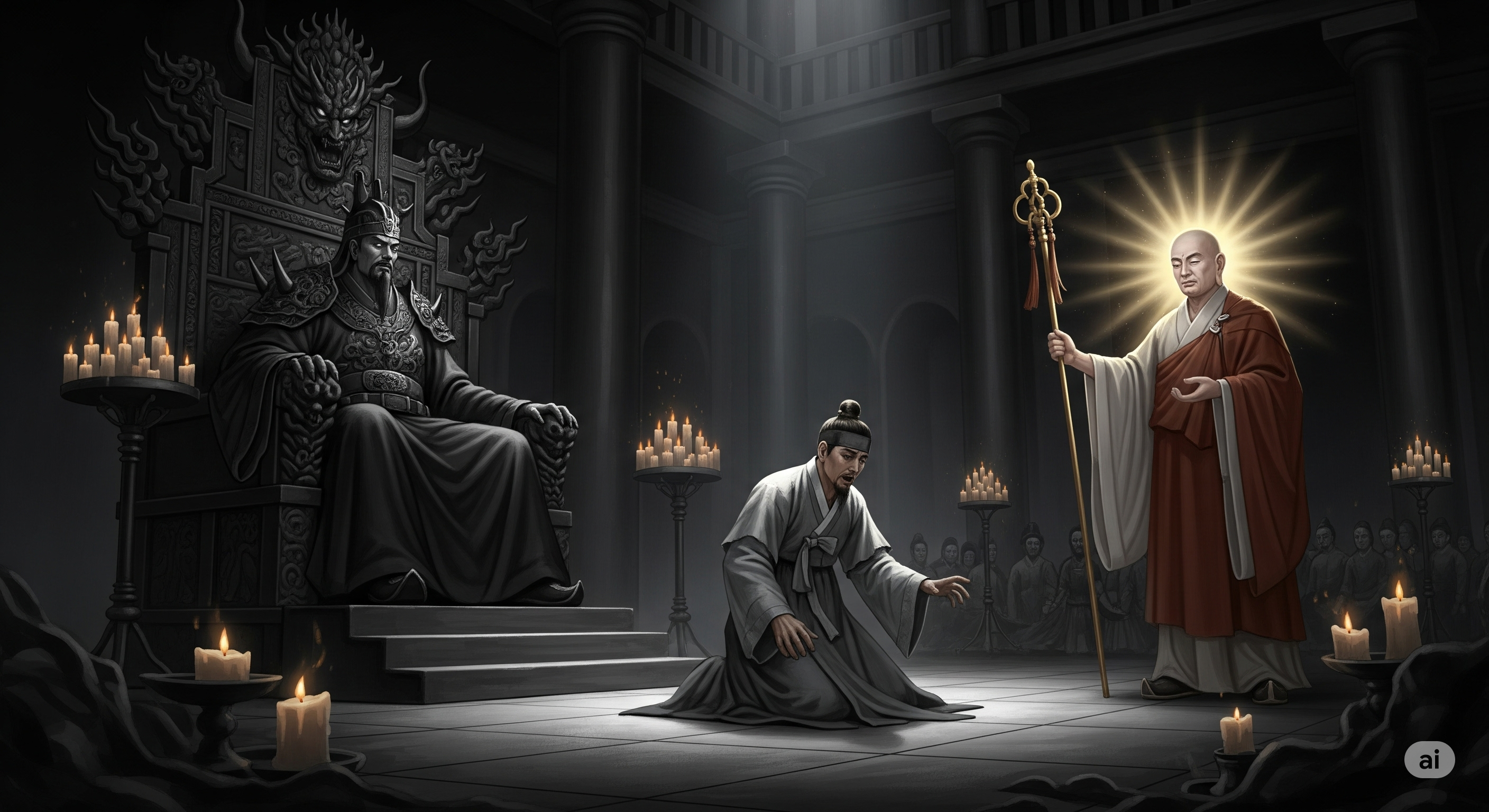 염라대왕도 김대감의 변화된 모습을 보고 놀랐습니다. "정말로 뉘우치고 있구나..."