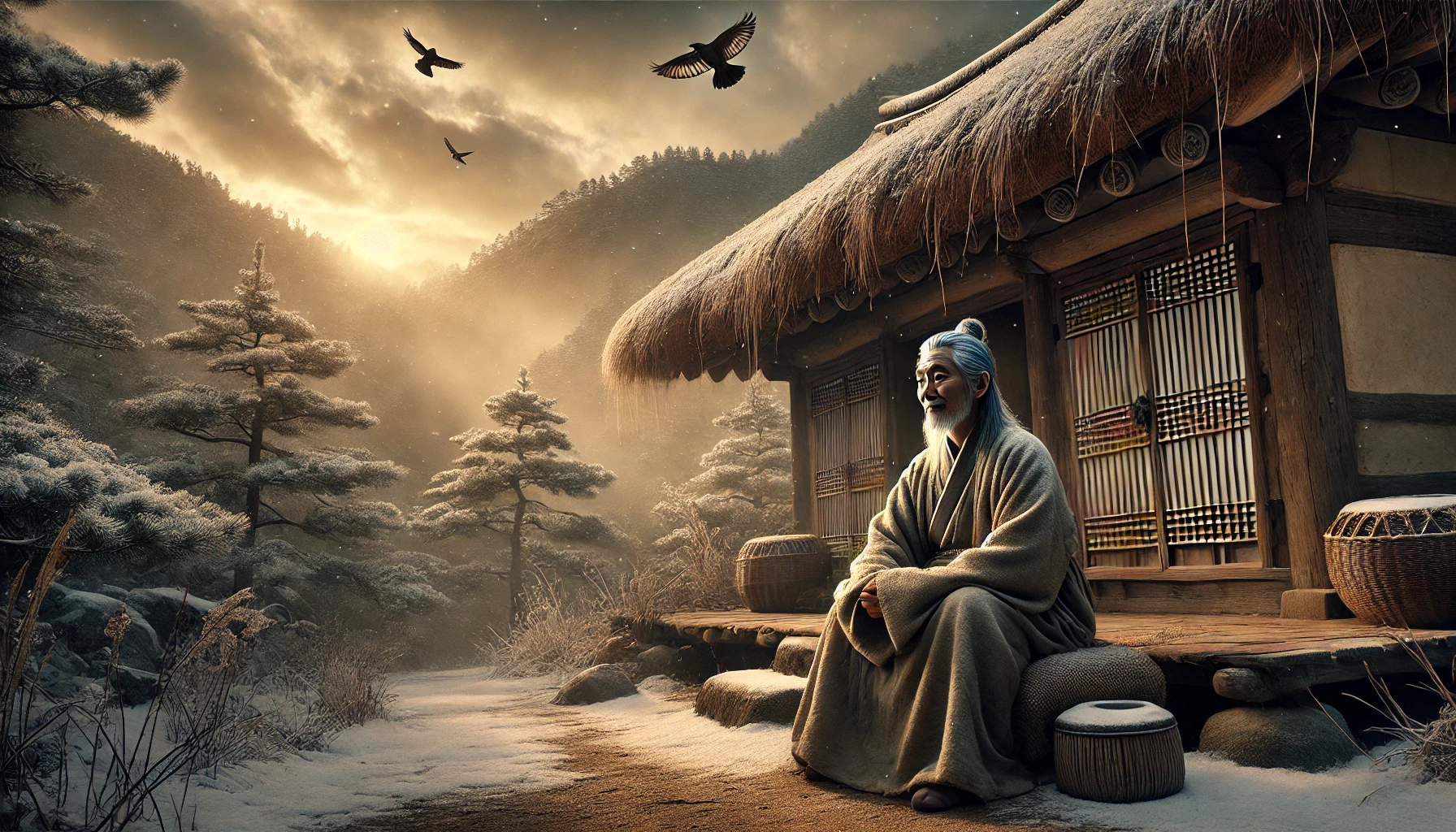 조선 후기, 북쪽 함경도의 깊은 산골마을에 윤학이라는 노승지가 살고 있었습니다. 마을에서 그를 모르는 사람은 없었습니다. 그는 어릴 때부터 타고난 선한 기운이 있어, 사람들은 그를 '성인(聖人)'이라 불렀습니다. 그의 검은 머리카락이 하얗게 변할 때까지, 그는 오직 선행으로만 삶을 채웠습니다.