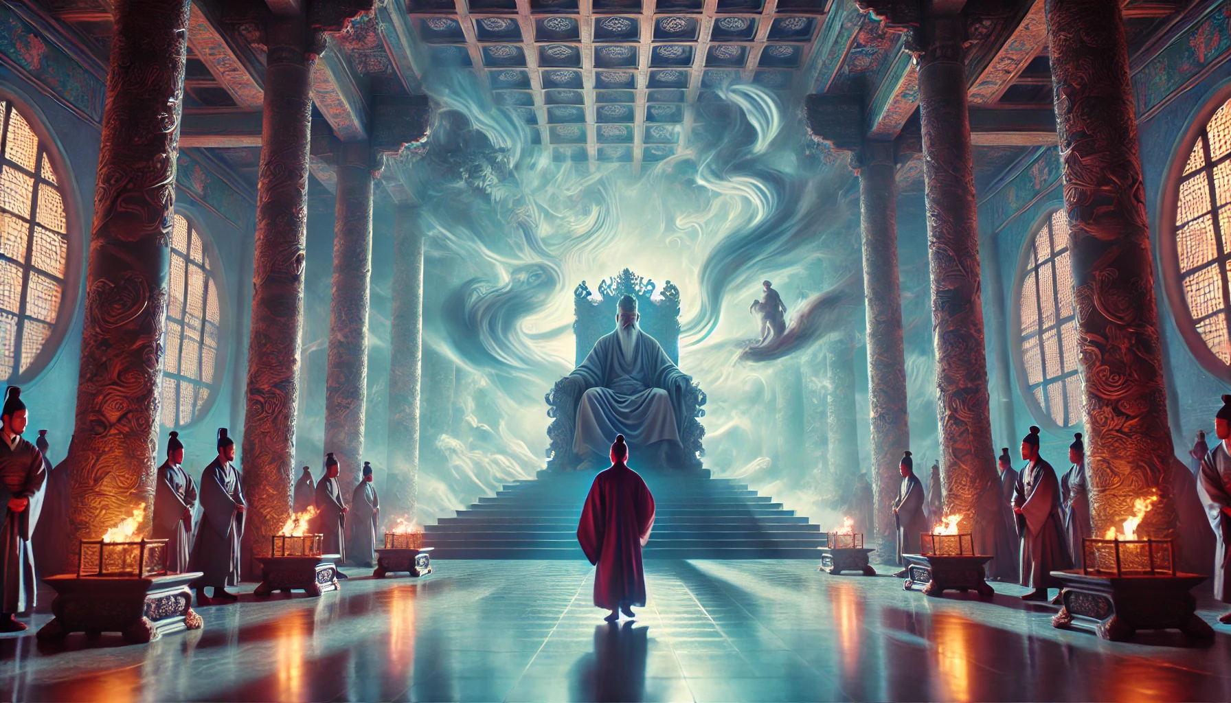 하지만 저승사자는 아랑곳하지 않고 혜명 스님을 전각 안으로 인도했다. 전각 안은 넓고 웅장했다. 중앙에는 높은 옥좌가 있었고, 그 위에 염라대왕이 앉아 있었다.