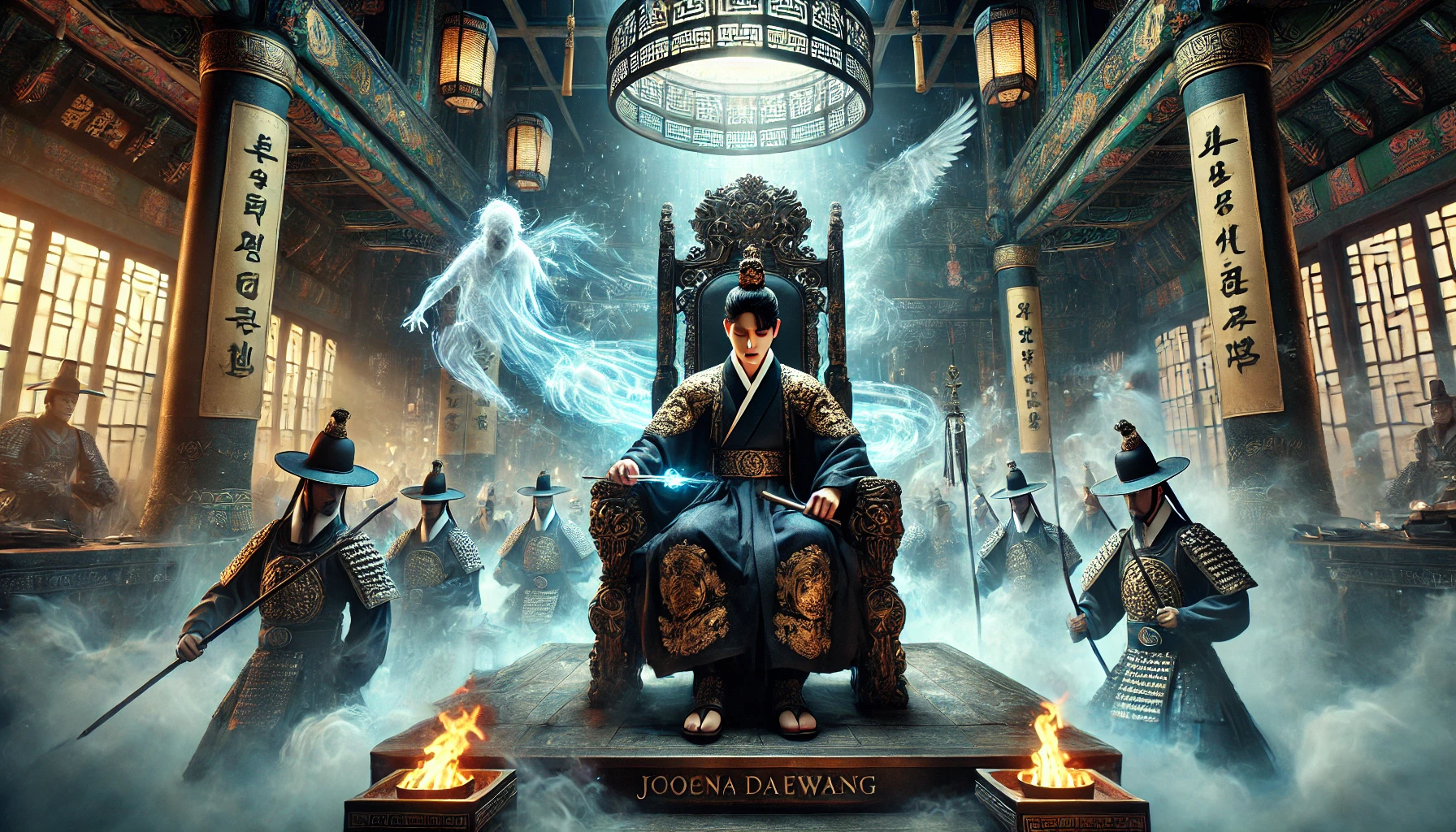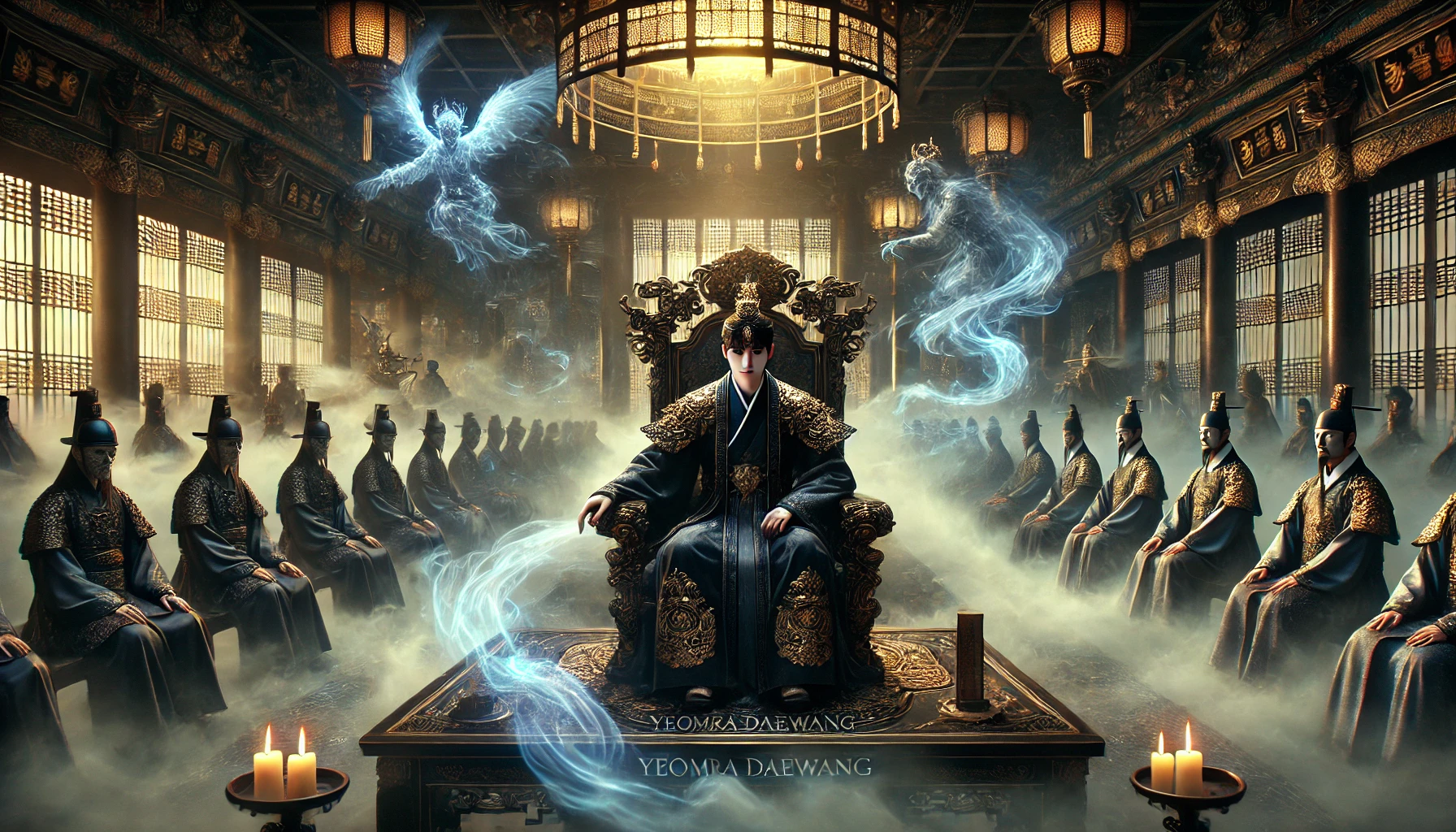 염라궁의 대전에는 엄숙한 분위기가 흘렀습니다. 높은 옥좌에 앉은 김문수는 마음을 차분히 가라앉히며 첫 번째 심판을 준비했습니다. 그의 앞에는 생사부가 펼쳐져 있었고, 거대한 천칭이 조용히 균형을 이루고 있었습니다.