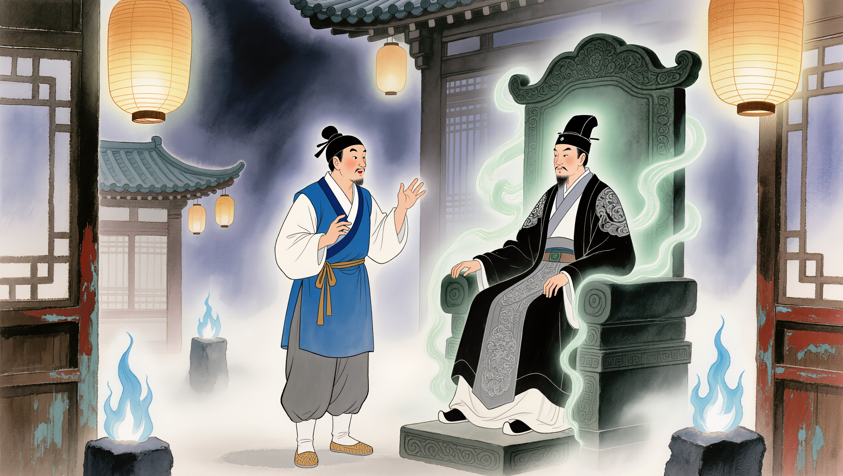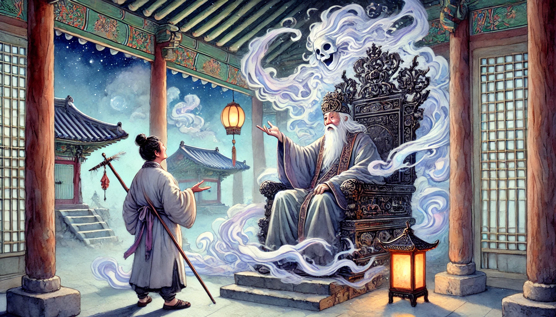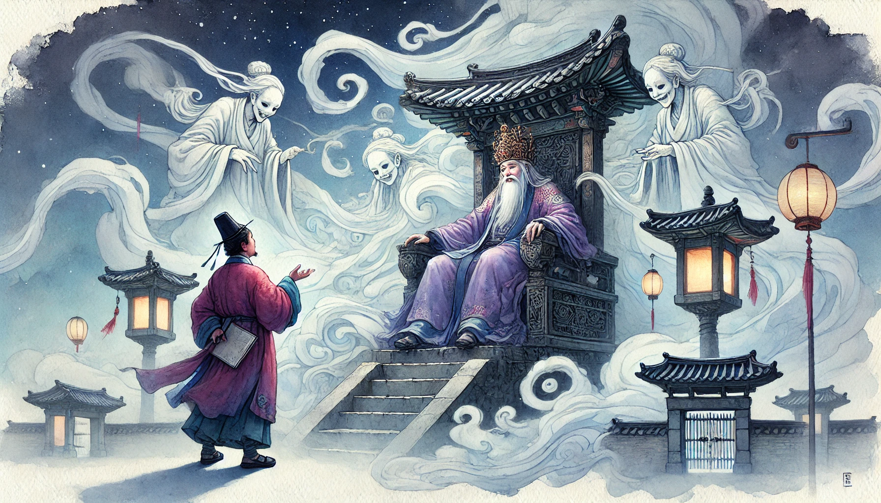 전각 안이 술렁였습니다. "저런 황당한 요구를!" 하지만 염라대왕은 손을 들어 조용히 시켰습니다. "흠... 재미있는 요구로구나. 하지만 안 되느니라."