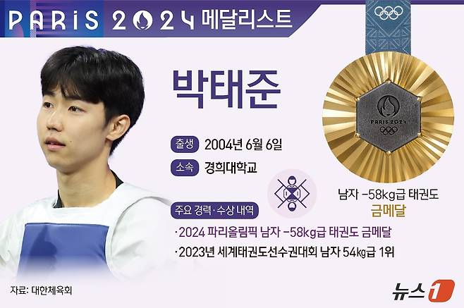 2022년 10월 맨체스터 월드그랑프리 남자 58㎏급, 2023년 5월 바쿠 세계선수권대회 남자 54㎏급에서 정상에 올랐던 박태준은 커리어의 올림픽 챔피언을 추가하며 세계 최강자로 거듭났다.