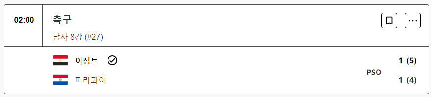 이집트는 파라과이와 승부차기까지 가는 접전을 벌였다. 파라과이가 후반 26분 디에고 로페스의 선제골로 앞서갔지만, 이집트가 후반 43분 이브라힘 아델의 동점골로 따라붙으며 연장전으로 끌고 가는 극적인 승부가 벌어졌다. 승부차기에서 파라과이의 2번 키커로 나온 마르셀로 페레스만 킥에 실패하면서 이집트가 1-1 후 5PK4 승리를 거뒀다.