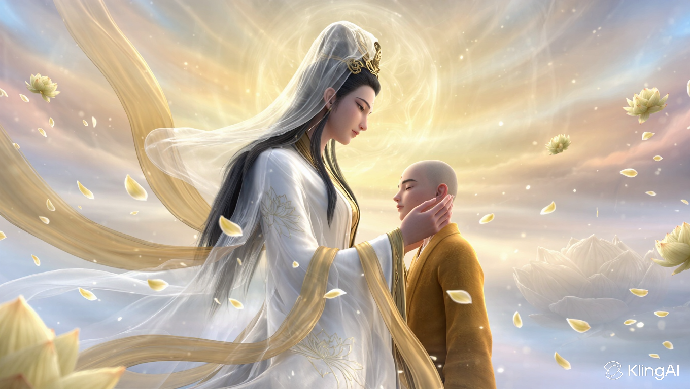 그녀는 천천히 허리를 숙여, 법운의 입술에 자신의 입술을 포갰습니다. 그것은 욕망이 섞인 관능적인 입맞춤이 아니었습니다. 어머니가 아이에게 하듯, 자비와 축복이 가득 담긴 성스러운 입맞춤이었습니다. 그녀의 부드럽고 향기로운 입술이 닿는 순간, 법운의 머릿속을 가득 채웠던 모든 번뇌와 갈등이 눈 녹듯 사라지는 것을 느꼈습니다. 그의 영혼은 이제껏 경험해보지 못한, 깊고 평화로운 환희에 휩싸였습니다. 마지막 밤, 관음보살은 그에게 육체의 쾌락이 아닌, 영혼의 구원을 선물했던 것입니다.