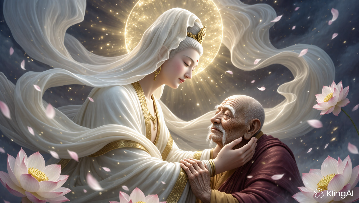 관음보살은 자리에서 일어나 법운에게 다가왔습니다. 그리고는 그의 얼굴을 부드럽게 감싸 안았습니다. "스님, 당신이 저에게 베풀었던 것은 단순한 동정이 아니었습니다. 그것은 조건 없는 사랑이자, 살아있는 모든 것을 아끼는 대자대비(大慈大悲)의 마음이었습니다. 계율에 얽매여 중생의 고통을 외면하는 것은 진정한 깨달음이 아닙니다. 진정한 깨달음은, 나와 남이 다르지 않음을 알고, 모든 것을 끌어안는 사랑에서 비롯되는 것입니다."