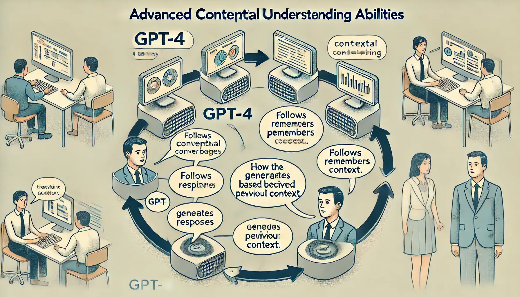 GPT-4는 문맥을 이해하는 능력이 뛰어납니다. 이는 대화를 자연스럽게 이어가고, 사용자 질문의 의도를 정확히 파악하여 적절한 답변을 제공하는 데 큰 도움을 줍니다. 모델은 대화의 흐름을 따라가며, 이전의 발화를 기억하고 이를 바탕으로 응답을 생성합니다.